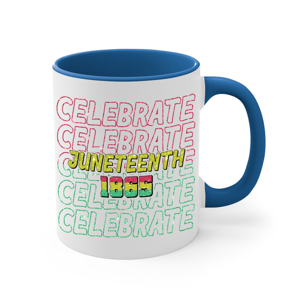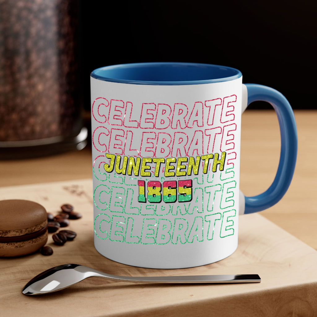 Enjoy the Celabrate Juneteenth Since 1865 Png 18# Mug . Here to bring big gulps of coffee, Tea or any beverage and style, these two-tone coffee mugs help people around the world start the day just right. Choose between 5 different color options and 2 sizes to best complement the design. Each mug comes with a colored handle, a colored interior, and a classy, glossy finish so that your mugs become an instant favorite.