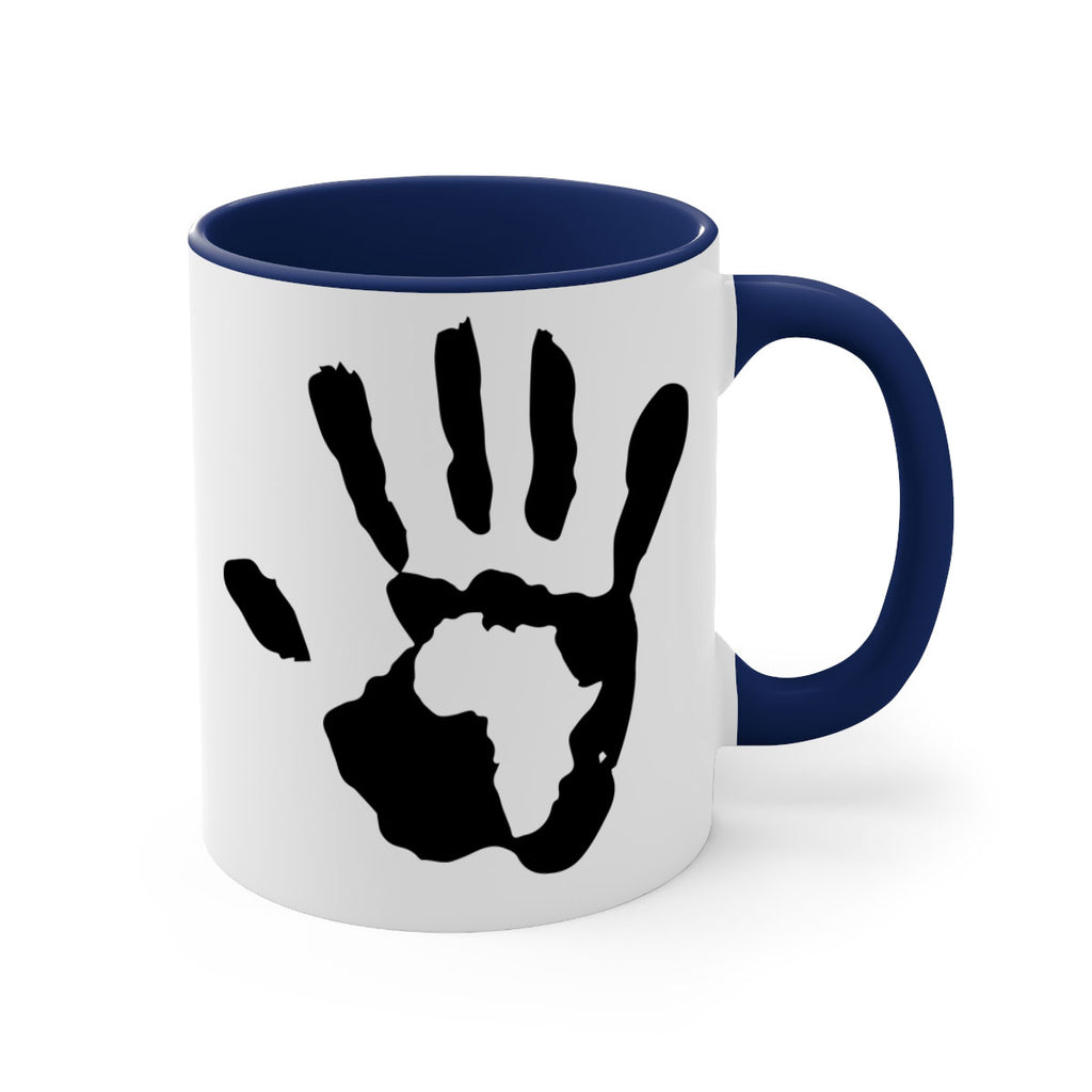 Enjoy the hand with africa Mug . Here to bring big gulps of coffee, Tea or any beverage and style, these two-tone coffee mugs help people around the world start the day just right. Choose between 5 different color options and 2 sizes to best complement the design. Each mug comes with a colored handle, a colored interior, and a classy, glossy finish so that your mugs become an instant favorite.