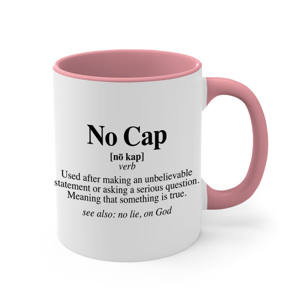 Enjoy the no cap 61# Mug . Here to bring big gulps of coffee, Tea or any beverage and style, these two-tone coffee mugs help people around the world start the day just right. Choose between 5 different color options and 2 sizes to best complement the design. Each mug comes with a colored handle, a colored interior, and a classy, glossy finish so that your mugs become an instant favorite.