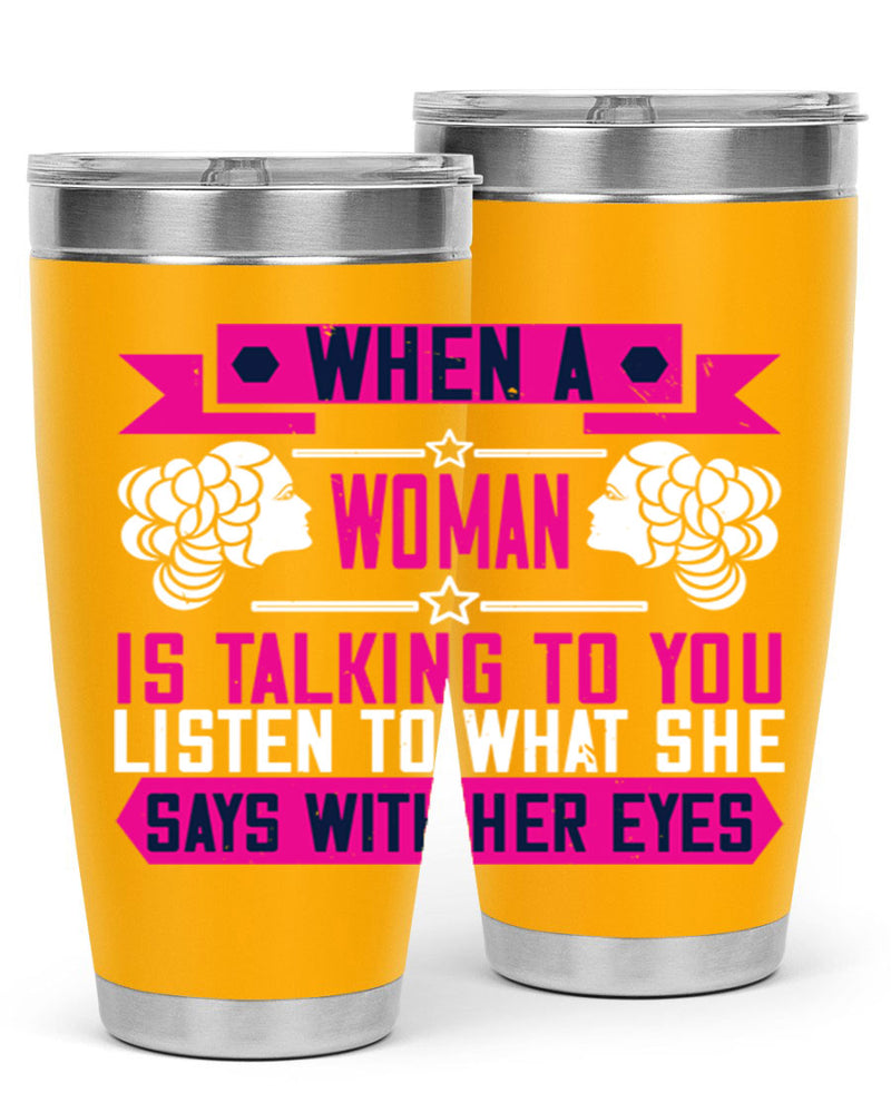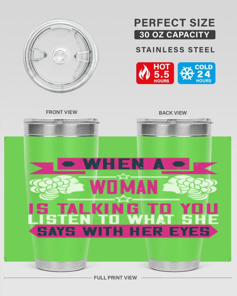 When a woman is talking to you listen to what she says with her eyes Style 21#- womens day- Tumbler