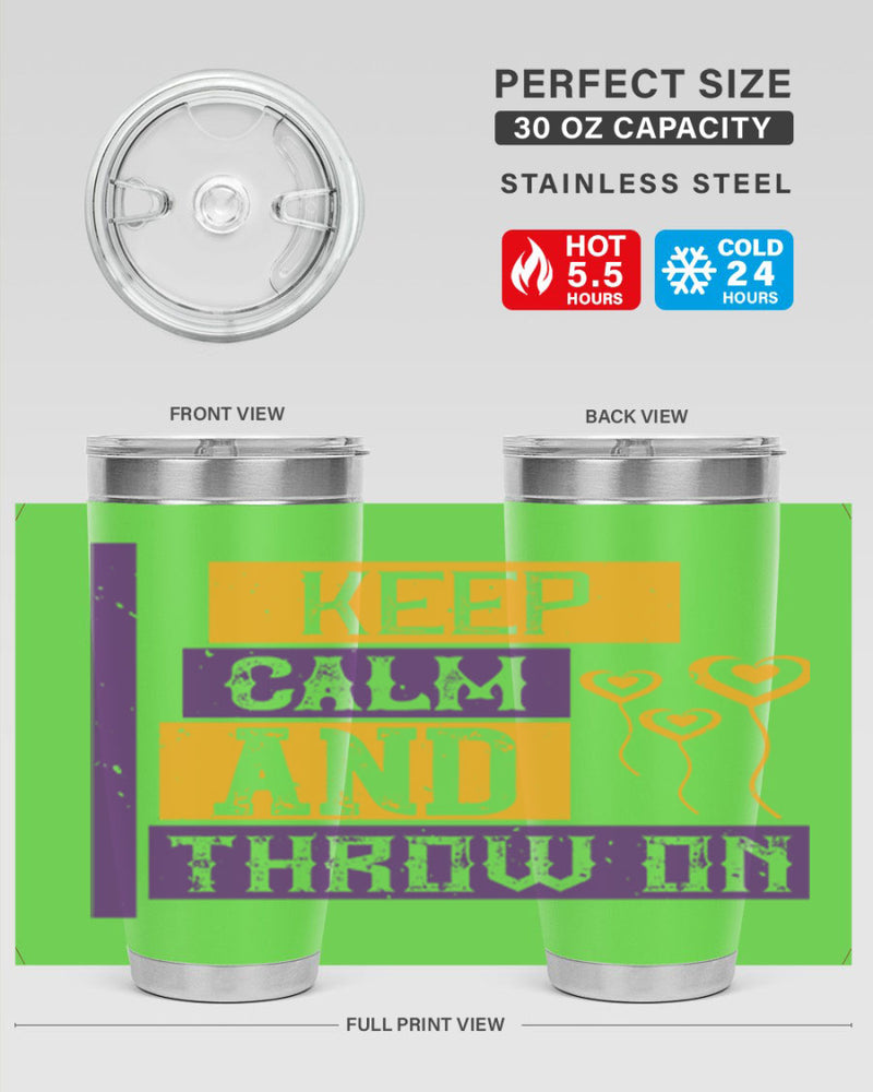 keep calm and throw on 55#- mardi gras- Tumbler