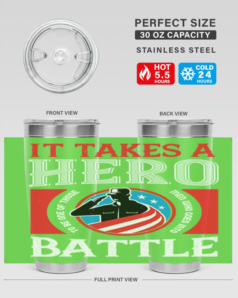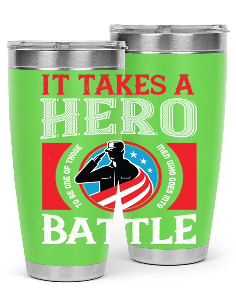 it takes a hero to be one of those men who goes into battle 50#- Veterns Day- Tumbler