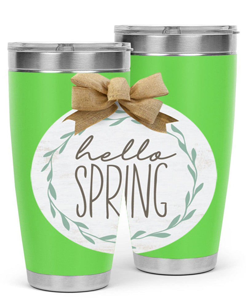 Hello Spring Wreath leaves Mockup209#- spring- Tumbler