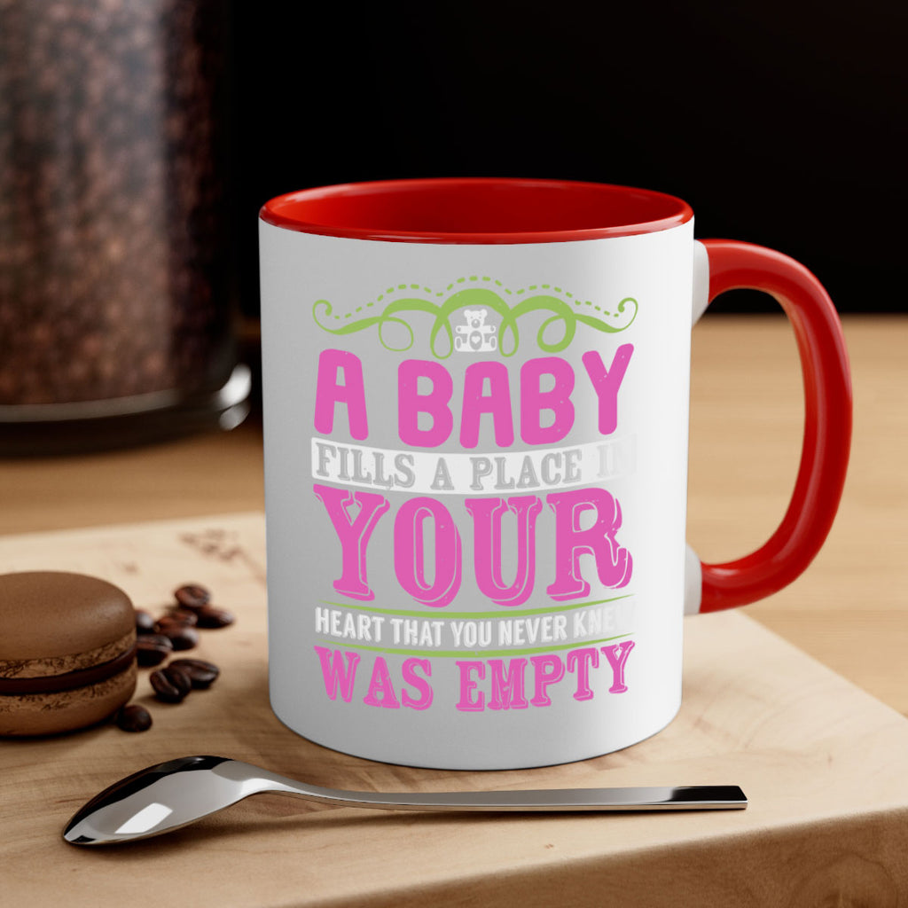 Enjoy the A baby fills A place in Your Heart that you never knew was empty Style 294# Mug . Here to bring big gulps of coffee, Tea or any beverage and style, these two-tone coffee mugs help people around the world start the day just right. Choose between 5 different color options and 2 sizes to best complement the design. Each mug comes with a colored handle, a colored interior, and a classy, glossy finish so that your mugs become an instant favorite.