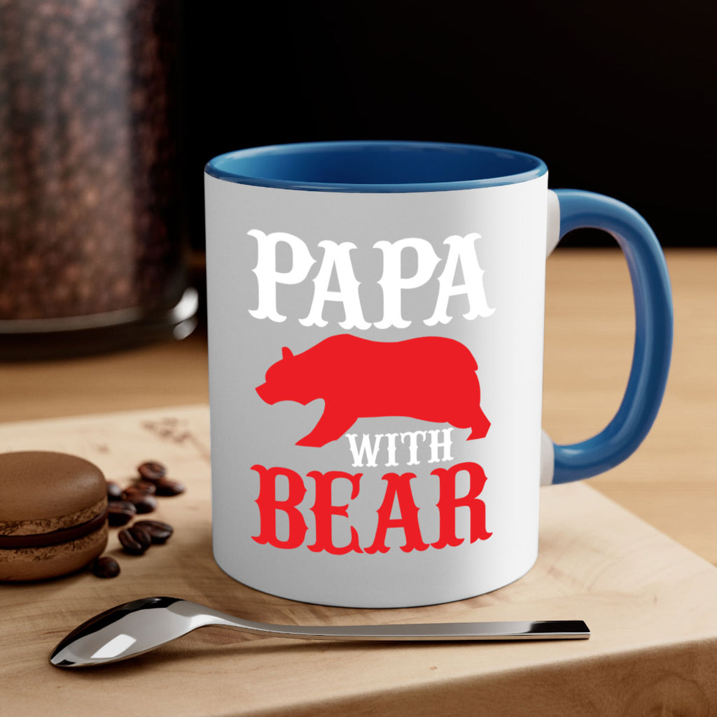 Enjoy the PAPA WITH BEAR 111# Mug . Here to bring big gulps of coffee, Tea or any beverage and style, these two-tone coffee mugs help people around the world start the day just right. Choose between 5 different color options and 2 sizes to best complement the design. Each mug comes with a colored handle, a colored interior, and a classy, glossy finish so that your mugs become an instant favorite.