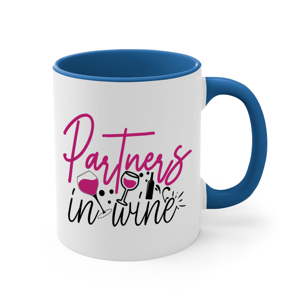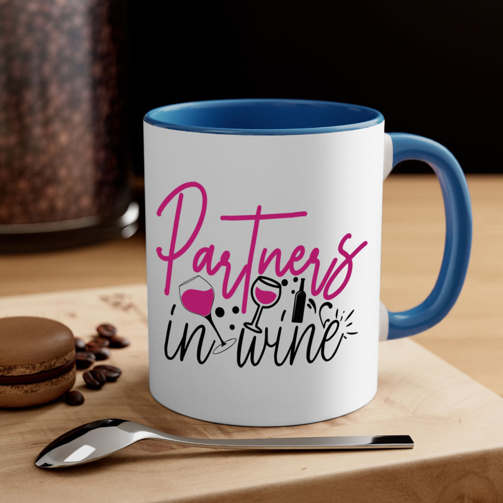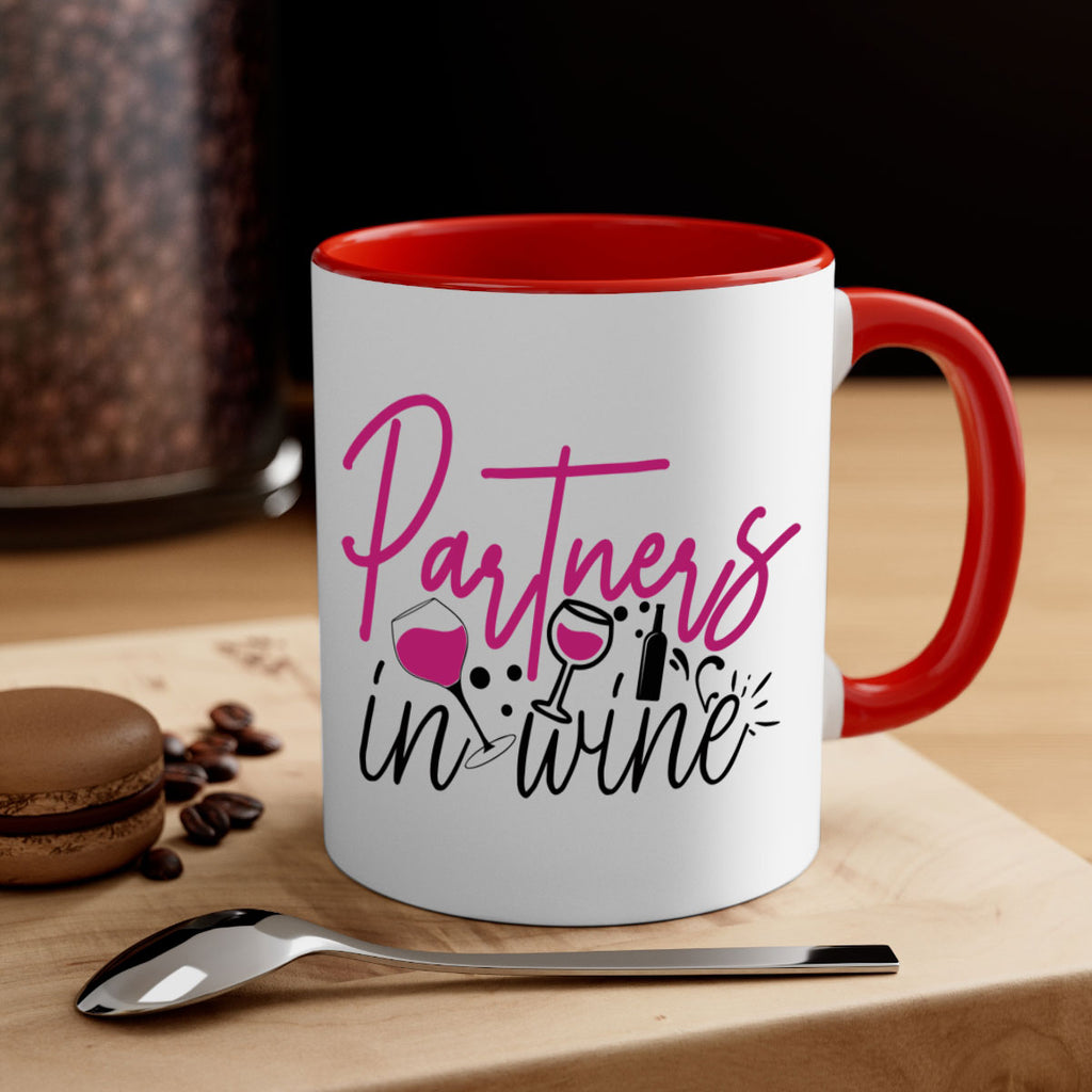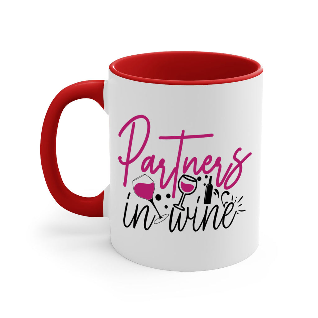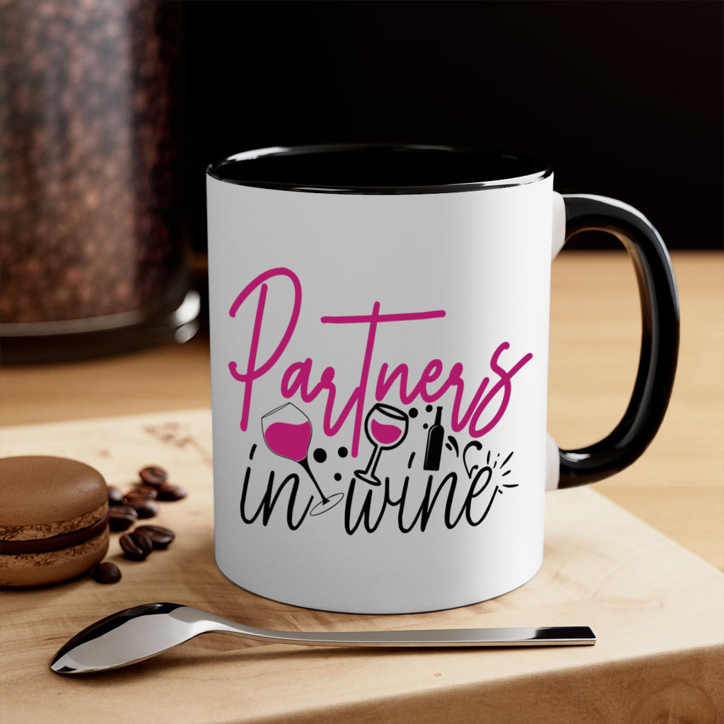 Enjoy the partners in wine 177# Mug . Here to bring big gulps of coffee, Tea or any beverage and style, these two-tone coffee mugs help people around the world start the day just right. Choose between 5 different color options and 2 sizes to best complement the design. Each mug comes with a colored handle, a colored interior, and a classy, glossy finish so that your mugs become an instant favorite.