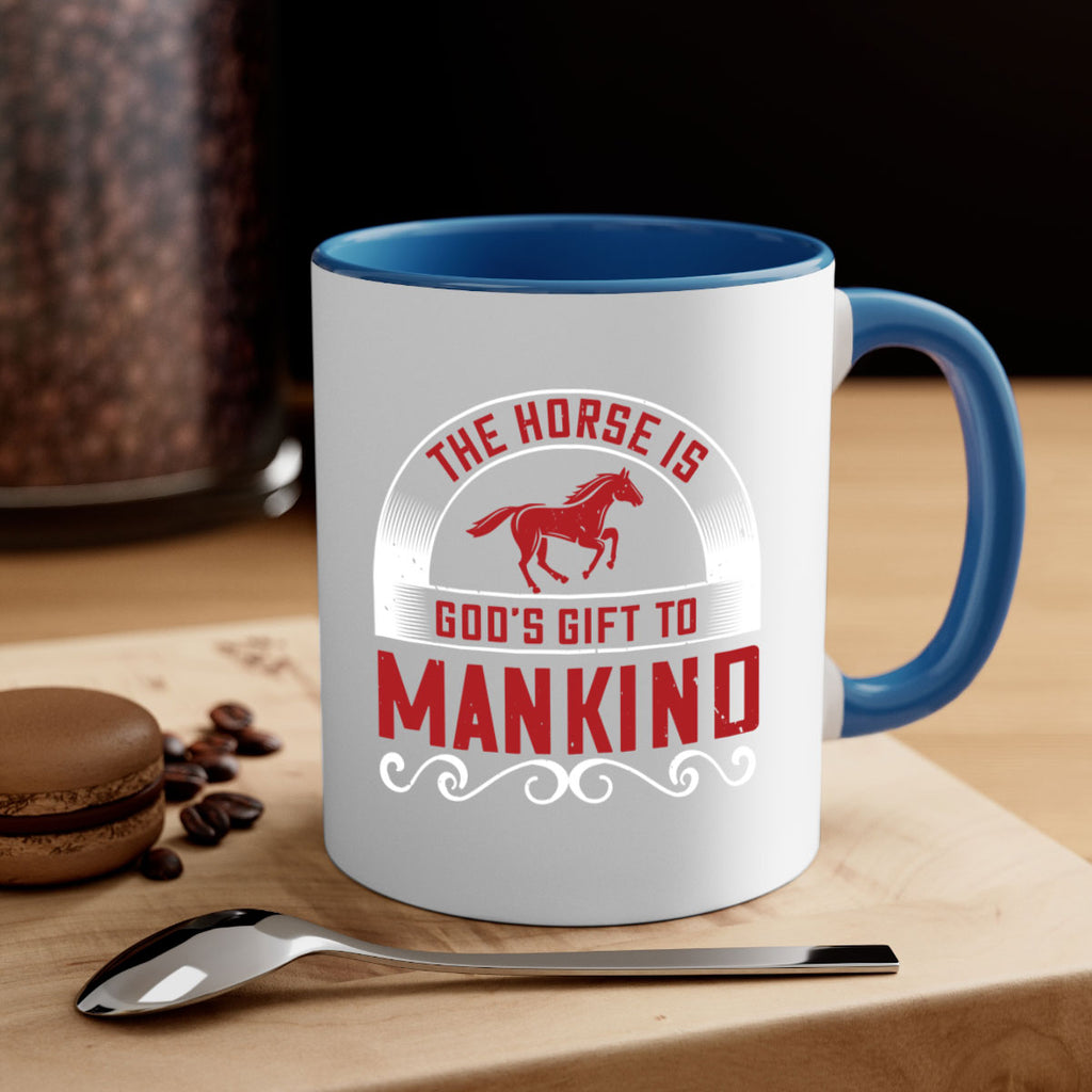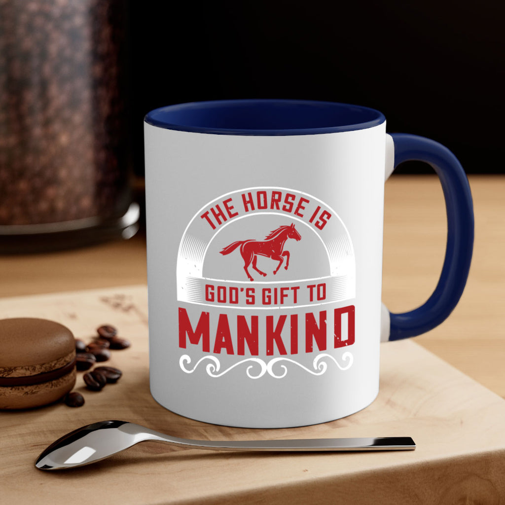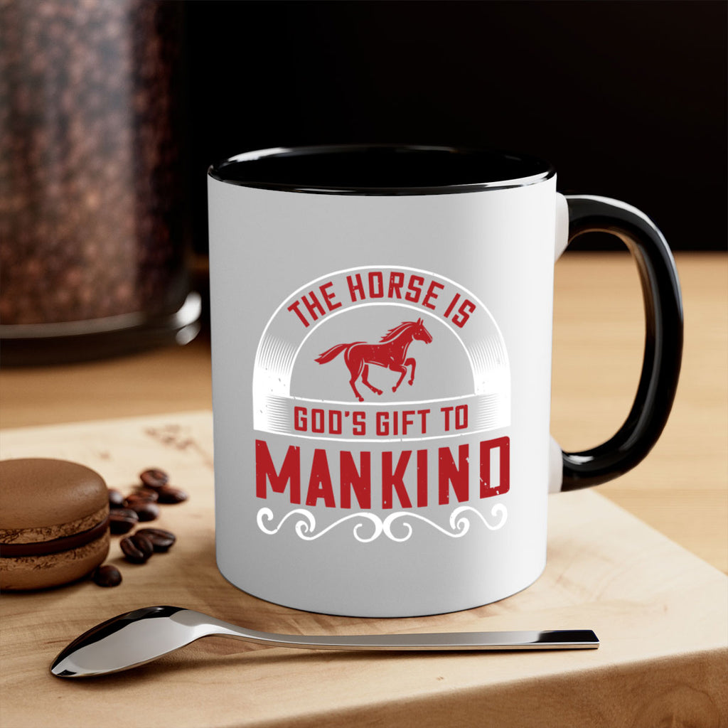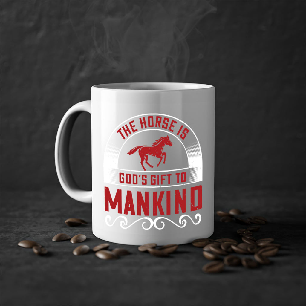 Enjoy the The horse is Gods gift to mankind Style 20# Mug . Here to bring big gulps of coffee, Tea or any beverage and style, these two-tone coffee mugs help people around the world start the day just right. Choose between 5 different color options and 2 sizes to best complement the design. Each mug comes with a colored handle, a colored interior, and a classy, glossy finish so that your mugs become an instant favorite.