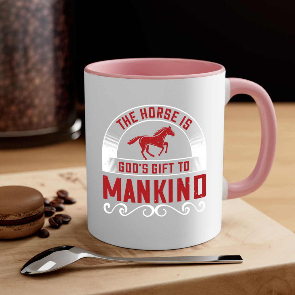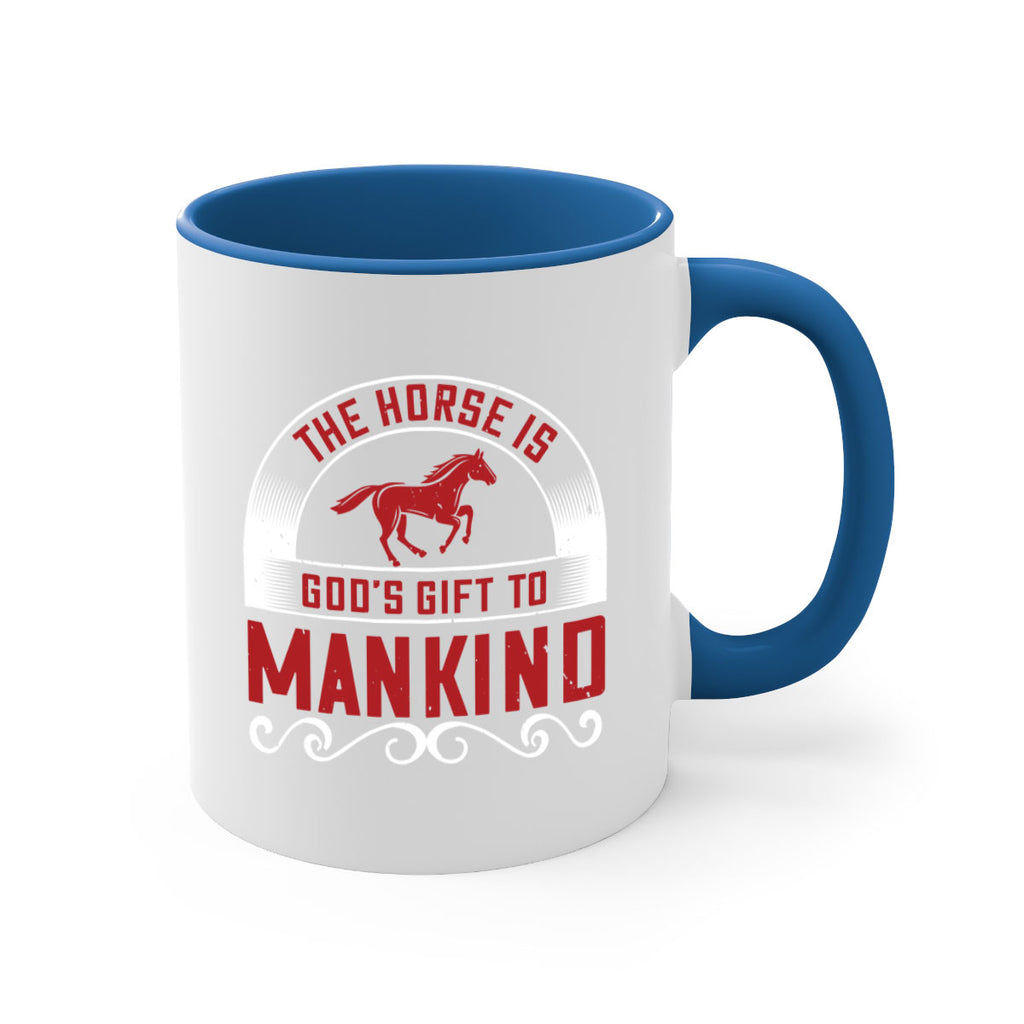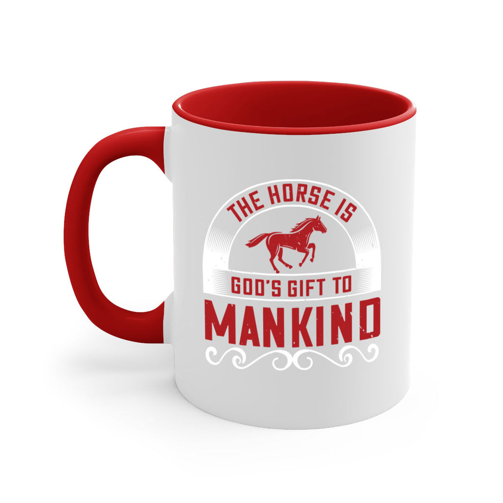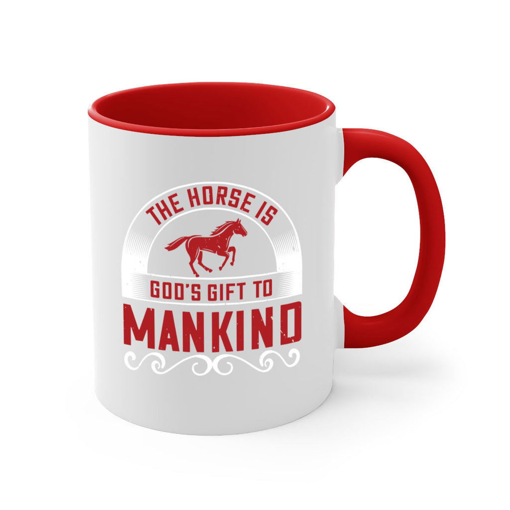 Enjoy the The horse is Gods gift to mankind Style 20# Mug . Here to bring big gulps of coffee, Tea or any beverage and style, these two-tone coffee mugs help people around the world start the day just right. Choose between 5 different color options and 2 sizes to best complement the design. Each mug comes with a colored handle, a colored interior, and a classy, glossy finish so that your mugs become an instant favorite.