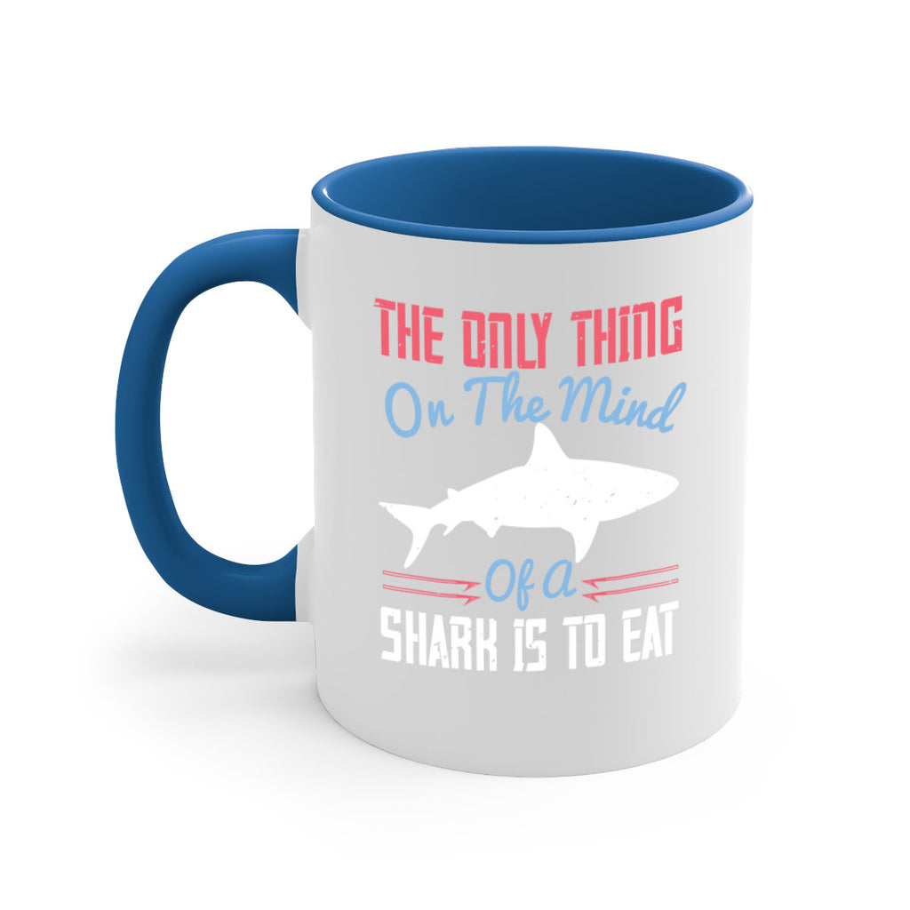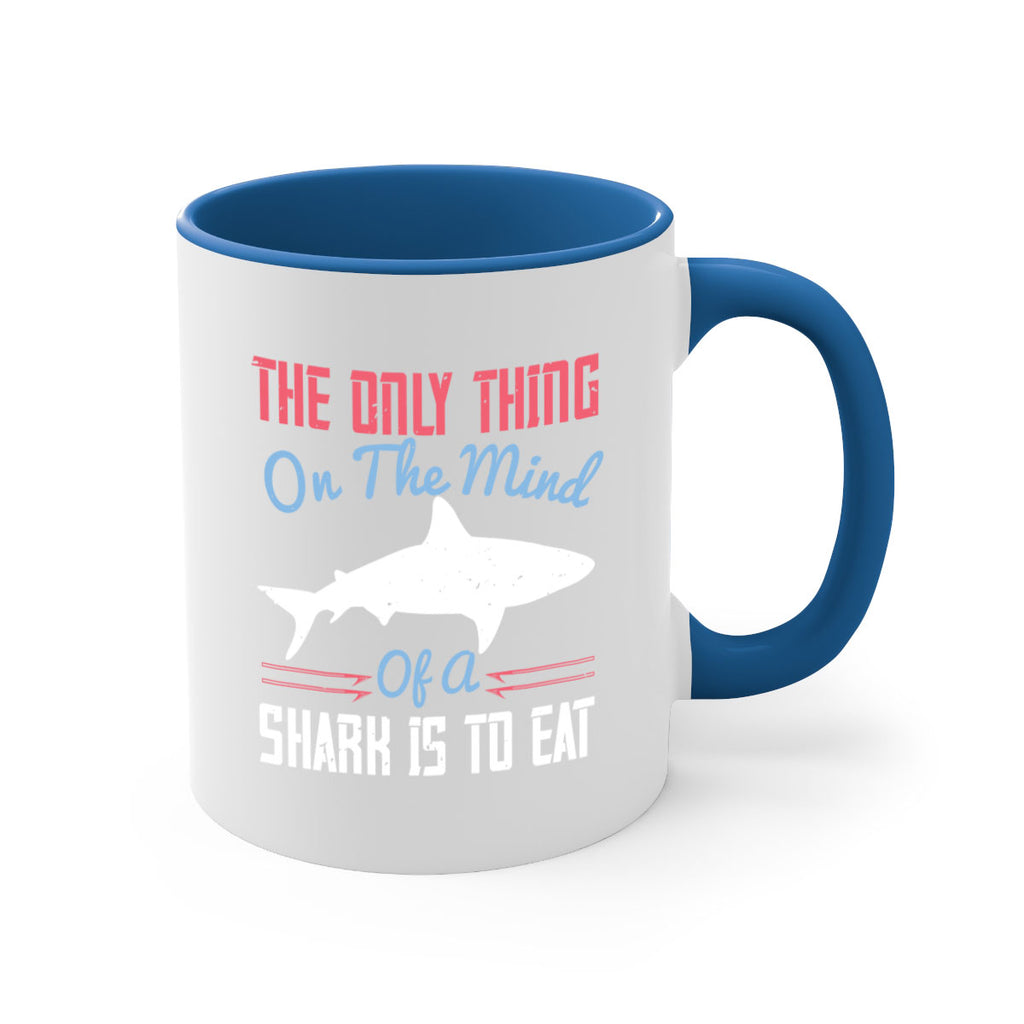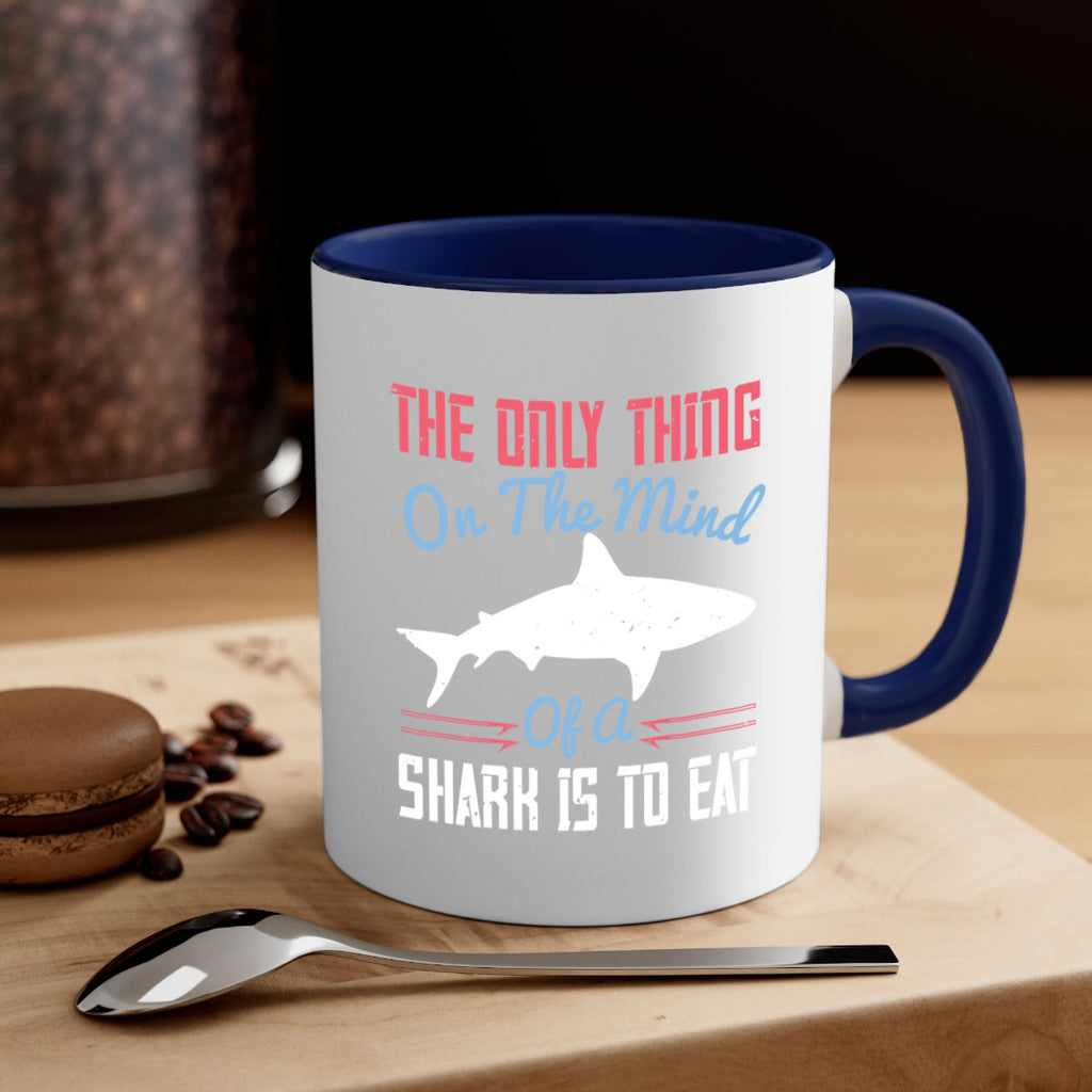 Enjoy the The only thing on the mind of a shark is to eat Style 18# Mug . Here to bring big gulps of coffee, Tea or any beverage and style, these two-tone coffee mugs help people around the world start the day just right. Choose between 5 different color options and 2 sizes to best complement the design. Each mug comes with a colored handle, a colored interior, and a classy, glossy finish so that your mugs become an instant favorite.