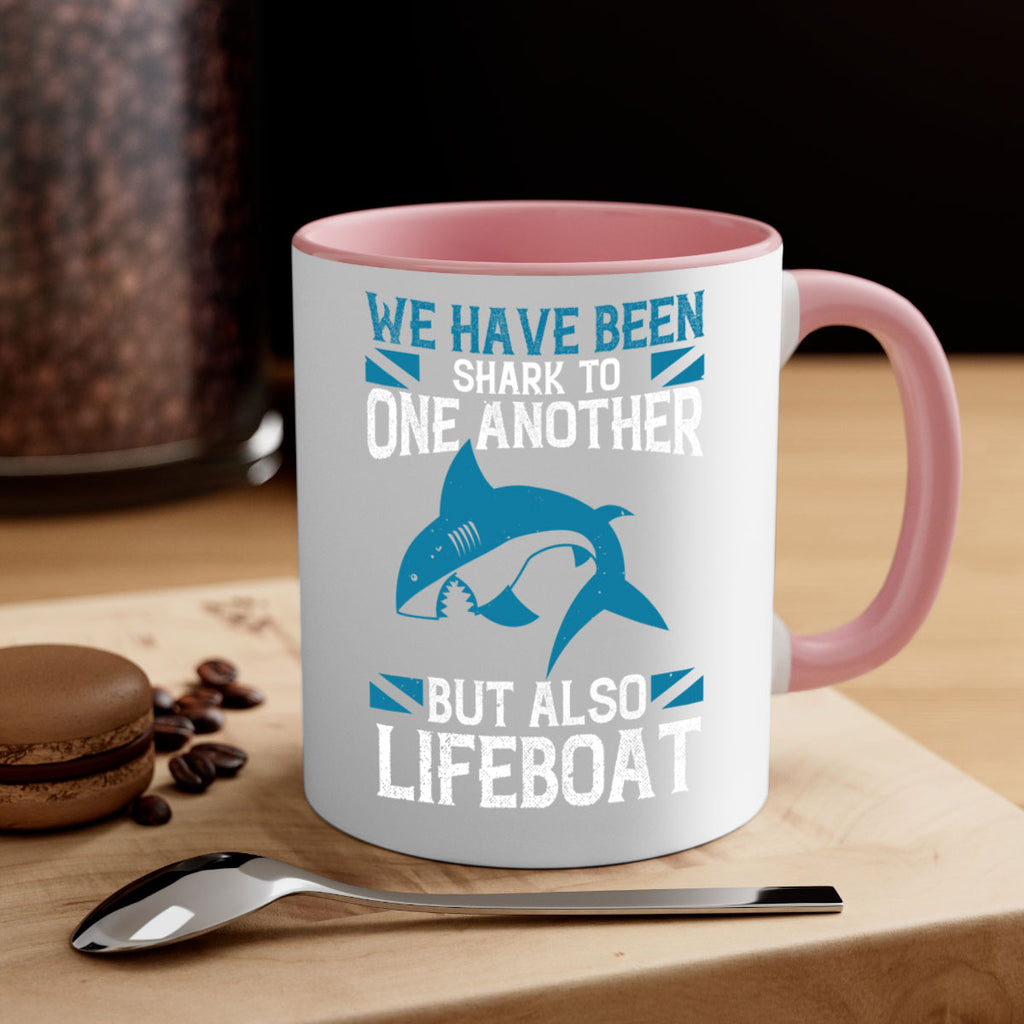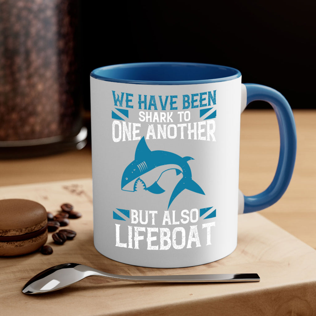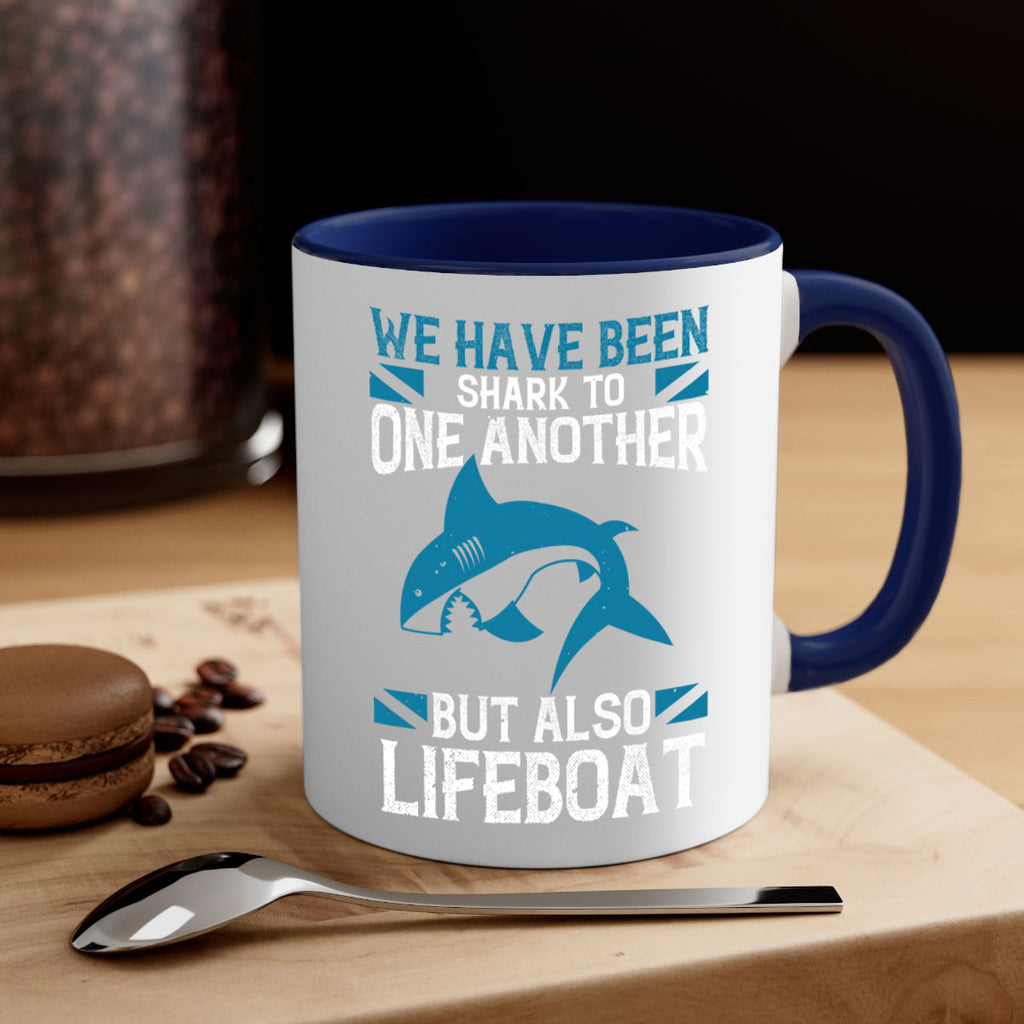 Enjoy the We have been shark to one another but also lifeboat Style 6# Mug . Here to bring big gulps of coffee, Tea or any beverage and style, these two-tone coffee mugs help people around the world start the day just right. Choose between 5 different color options and 2 sizes to best complement the design. Each mug comes with a colored handle, a colored interior, and a classy, glossy finish so that your mugs become an instant favorite.