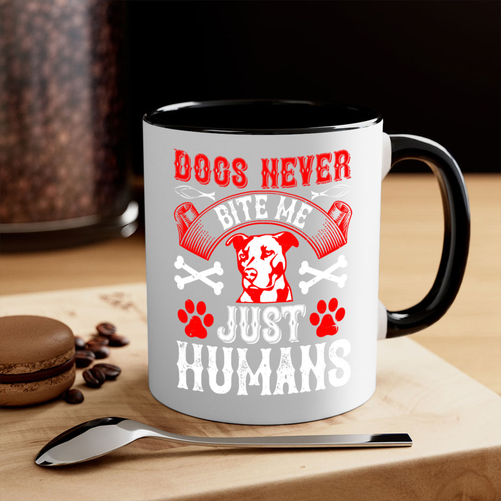 Enjoy the Dogs never bite me Just humans Style 209# Mug . Here to bring big gulps of coffee, Tea or any beverage and style, these two-tone coffee mugs help people around the world start the day just right. Choose between 5 different color options and 2 sizes to best complement the design. Each mug comes with a colored handle, a colored interior, and a classy, glossy finish so that your mugs become an instant favorite.