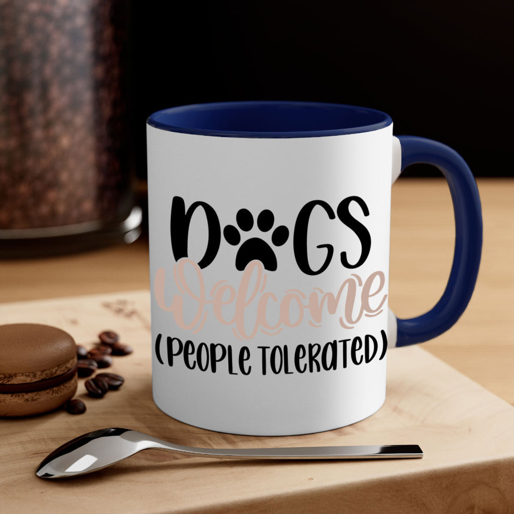 Enjoy the Dogs Welcome Style 21# Mug . Here to bring big gulps of coffee, Tea or any beverage and style, these two-tone coffee mugs help people around the world start the day just right. Choose between 5 different color options and 2 sizes to best complement the design. Each mug comes with a colored handle, a colored interior, and a classy, glossy finish so that your mugs become an instant favorite.