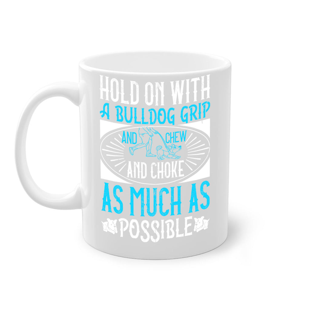 Enjoy the Hold on with a bulldog grip and chew and choke as much as possible Style 44# Mug . Here to bring big gulps of coffee, Tea or any beverage and style, these two-tone coffee mugs help people around the world start the day just right. Choose between 5 different color options and 2 sizes to best complement the design. Each mug comes with a colored handle, a colored interior, and a classy, glossy finish so that your mugs become an instant favorite.