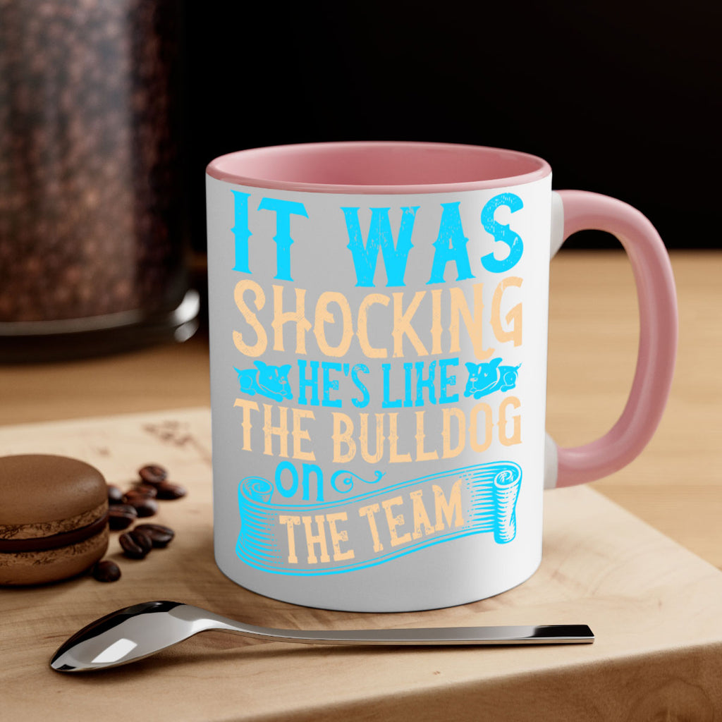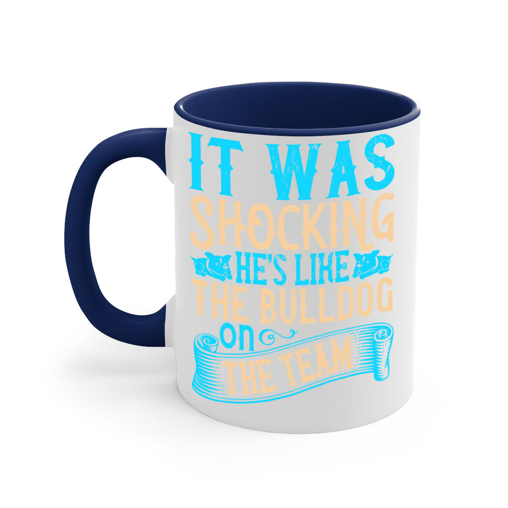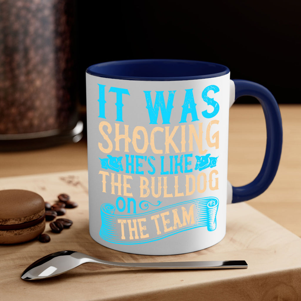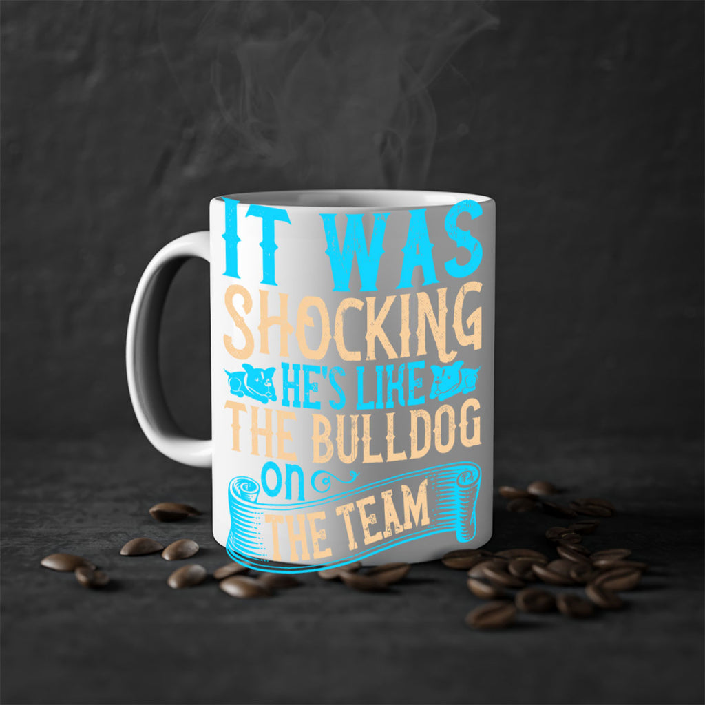 Enjoy the It was shocking Hes like the bulldog on the team Style 35# Mug . Here to bring big gulps of coffee, Tea or any beverage and style, these two-tone coffee mugs help people around the world start the day just right. Choose between 5 different color options and 2 sizes to best complement the design. Each mug comes with a colored handle, a colored interior, and a classy, glossy finish so that your mugs become an instant favorite.