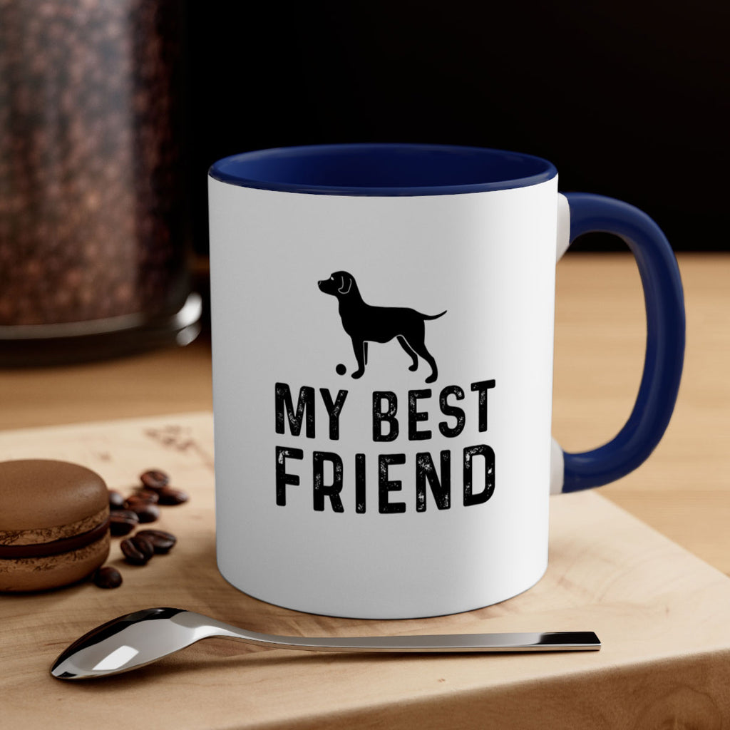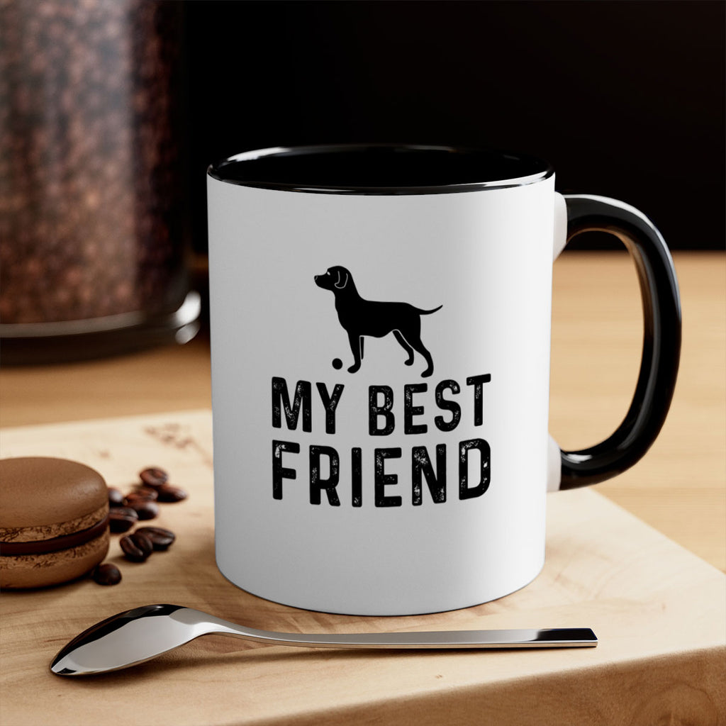 Enjoy the My Best Friend Style 38# Mug . Here to bring big gulps of coffee, Tea or any beverage and style, these two-tone coffee mugs help people around the world start the day just right. Choose between 5 different color options and 2 sizes to best complement the design. Each mug comes with a colored handle, a colored interior, and a classy, glossy finish so that your mugs become an instant favorite.