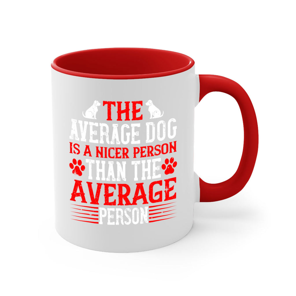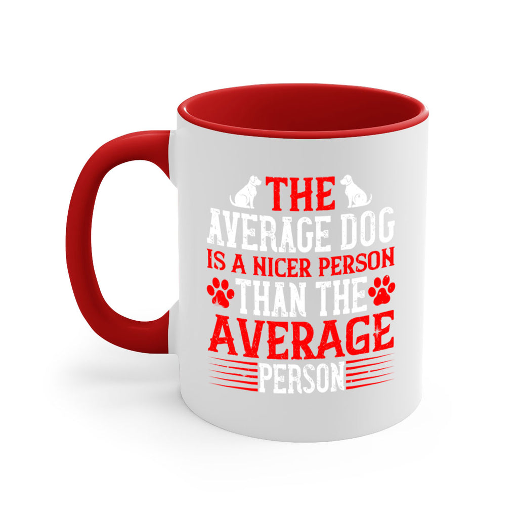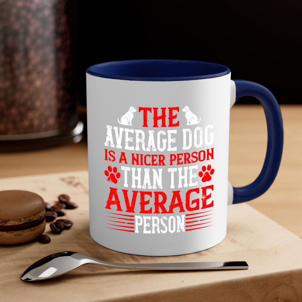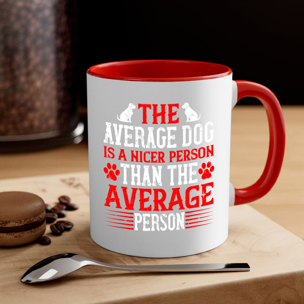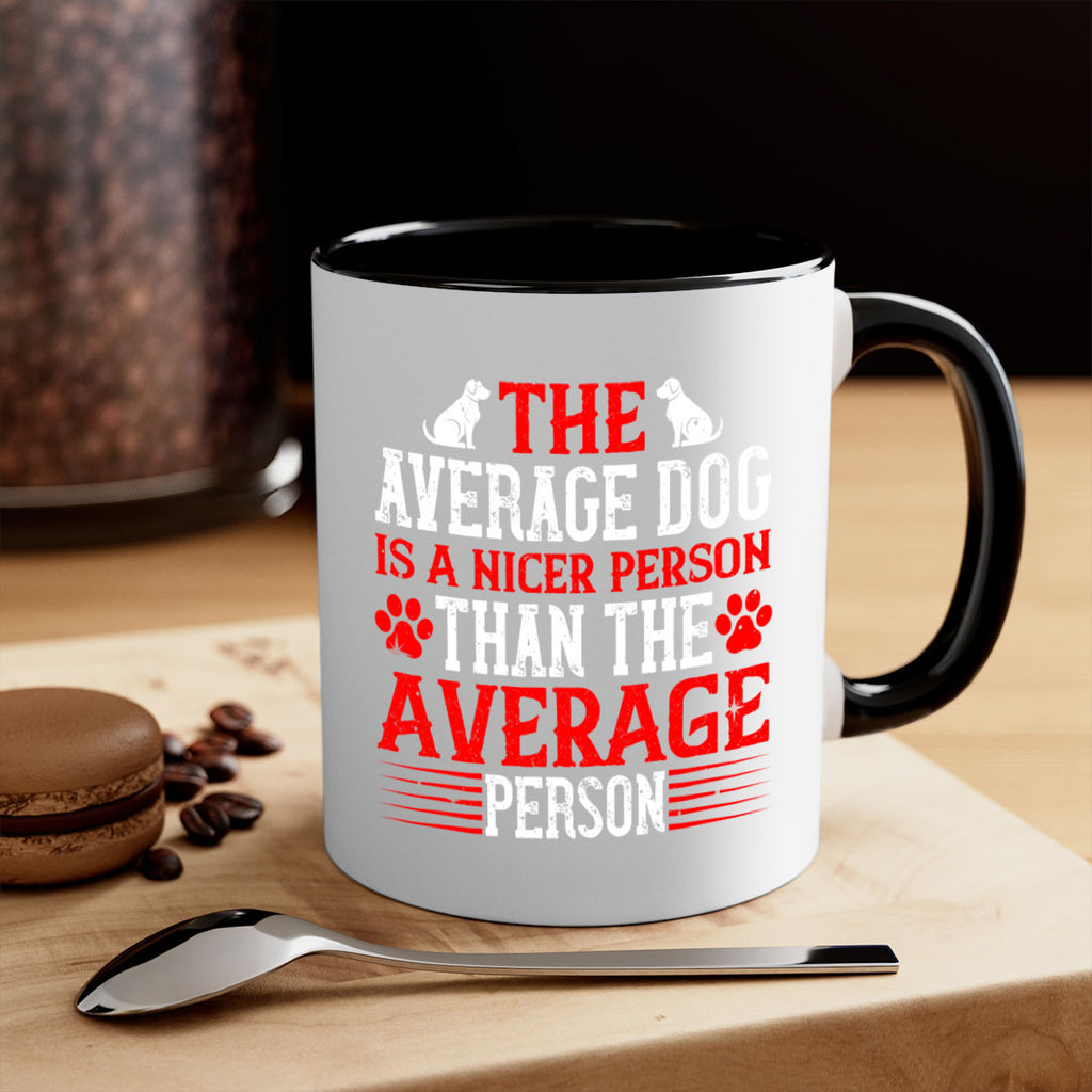 Enjoy the The average dog is a nicer person than the average person Style 166# Mug . Here to bring big gulps of coffee, Tea or any beverage and style, these two-tone coffee mugs help people around the world start the day just right. Choose between 5 different color options and 2 sizes to best complement the design. Each mug comes with a colored handle, a colored interior, and a classy, glossy finish so that your mugs become an instant favorite.