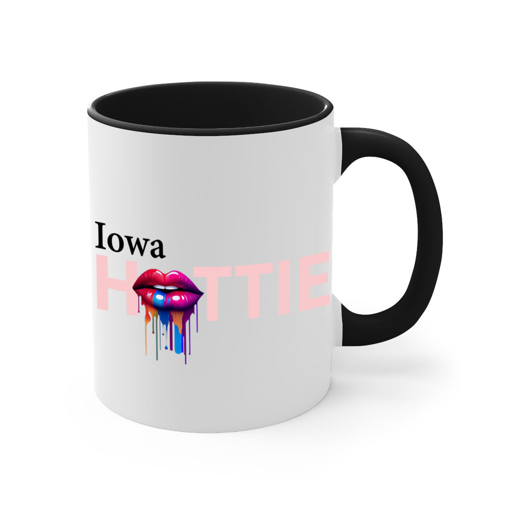 Enjoy the Iowa Hottie with dripping lips 15# Mug . Here to bring big gulps of coffee, Tea or any beverage and style, these two-tone coffee mugs help people around the world start the day just right. Choose between 5 different color options and 2 sizes to best complement the design. Each mug comes with a colored handle, a colored interior, and a classy, glossy finish so that your mugs become an instant favorite.