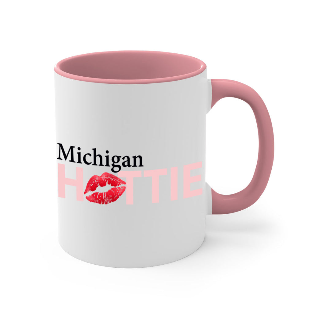 Enjoy the Michigan Hottie With Red Lips 22# Mug . Here to bring big gulps of coffee, Tea or any beverage and style, these two-tone coffee mugs help people around the world start the day just right. Choose between 5 different color options and 2 sizes to best complement the design. Each mug comes with a colored handle, a colored interior, and a classy, glossy finish so that your mugs become an instant favorite.