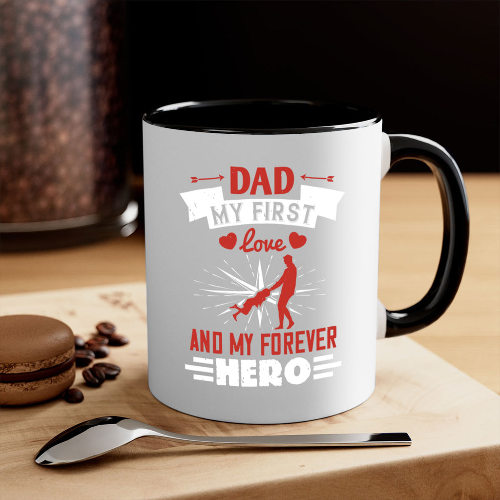 Enjoy the dad my first love and my forever hero 114# Mug . Here to bring big gulps of coffee, Tea or any beverage and style, these two-tone coffee mugs help people around the world start the day just right. Choose between 5 different color options and 2 sizes to best complement the design. Each mug comes with a colored handle, a colored interior, and a classy, glossy finish so that your mugs become an instant favorite.