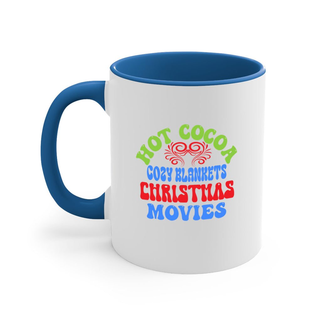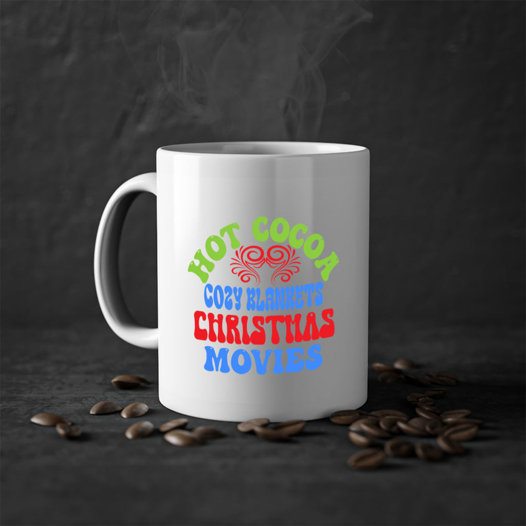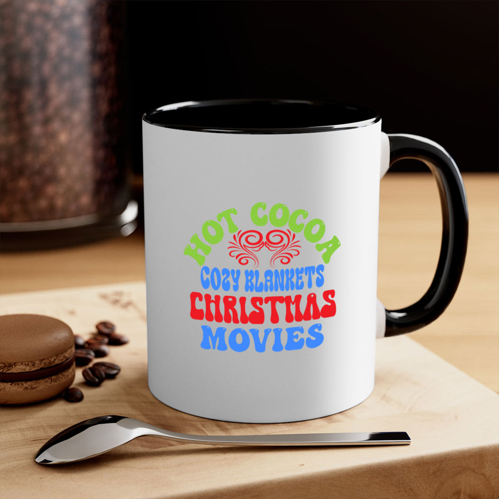 Enjoy the Hot cocoa cozy blankets christmas movies 210# Mug . Here to bring big gulps of coffee, Tea or any beverage and style, these two-tone coffee mugs help people around the world start the day just right. Choose between 5 different color options and 2 sizes to best complement the design. Each mug comes with a colored handle, a colored interior, and a classy, glossy finish so that your mugs become an instant favorite.