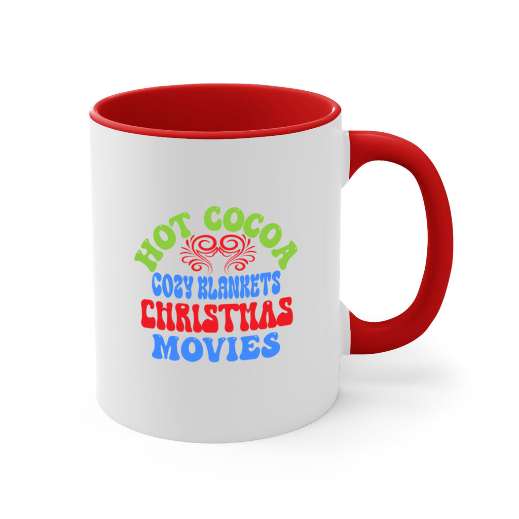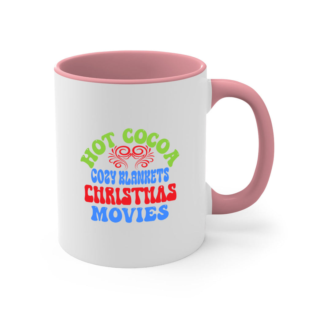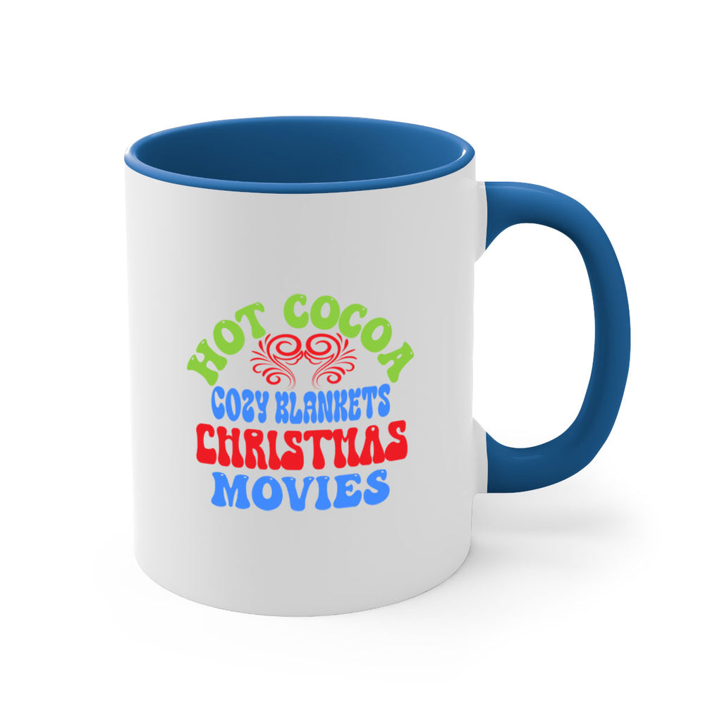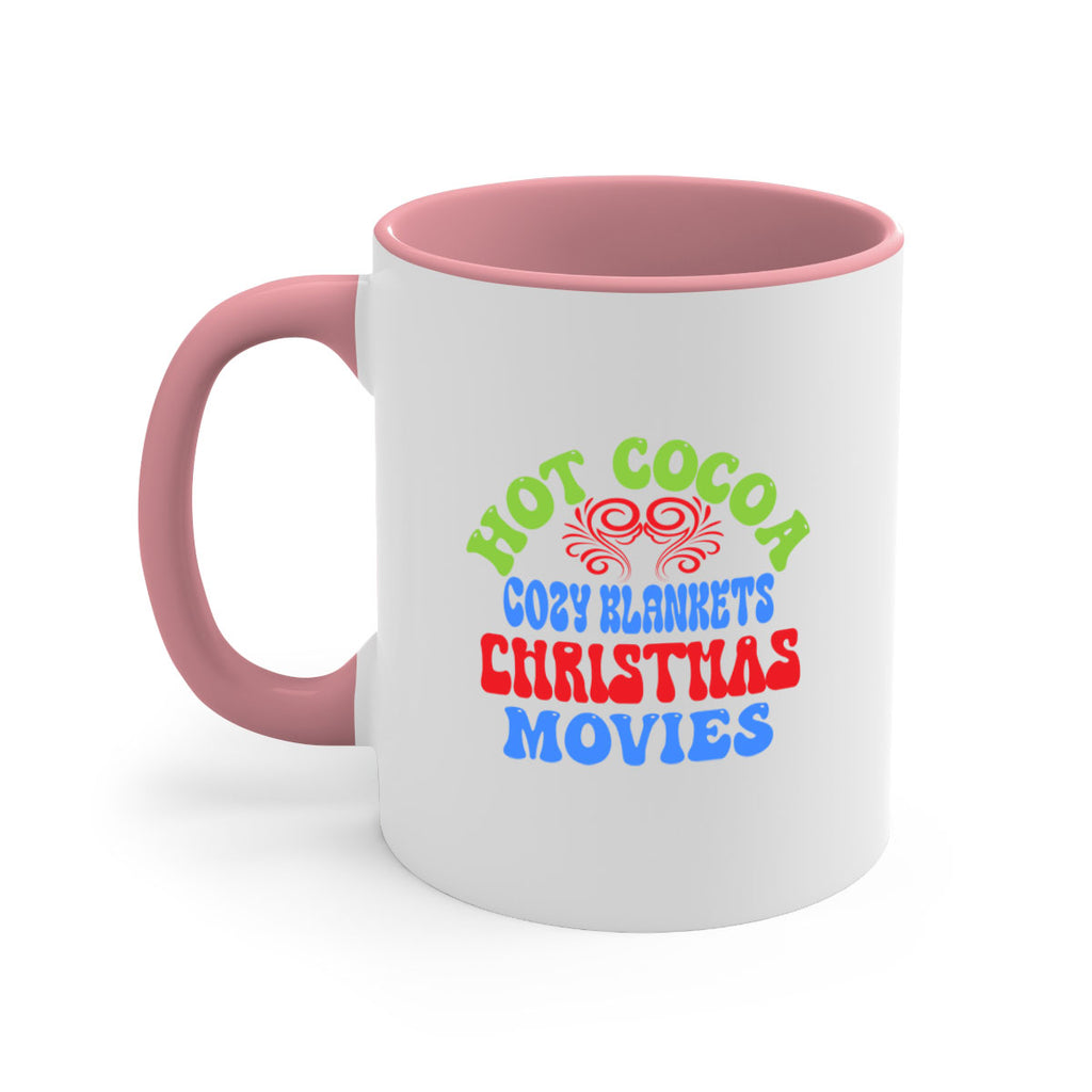 Enjoy the Hot cocoa cozy blankets christmas movies 210# Mug . Here to bring big gulps of coffee, Tea or any beverage and style, these two-tone coffee mugs help people around the world start the day just right. Choose between 5 different color options and 2 sizes to best complement the design. Each mug comes with a colored handle, a colored interior, and a classy, glossy finish so that your mugs become an instant favorite.
