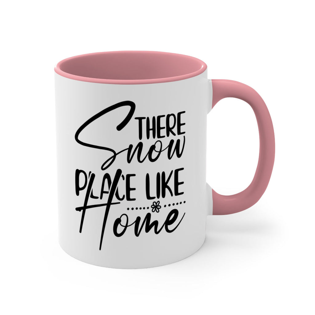Enjoy the There snow place like home 411# Mug . Here to bring big gulps of coffee, Tea or any beverage and style, these two-tone coffee mugs help people around the world start the day just right. Choose between 5 different color options and 2 sizes to best complement the design. Each mug comes with a colored handle, a colored interior, and a classy, glossy finish so that your mugs become an instant favorite.