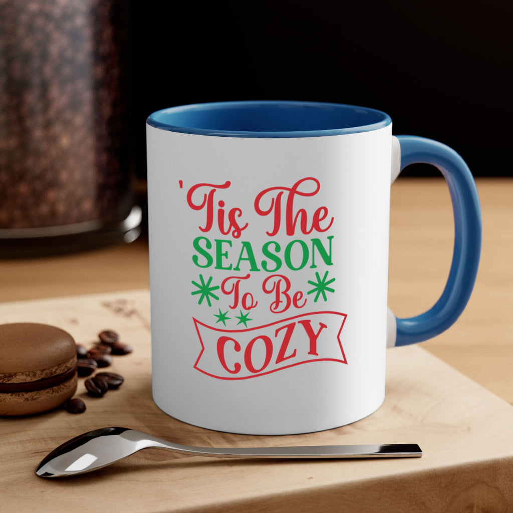 Enjoy the Tis The Season To Be Cozy 415# Mug . Here to bring big gulps of coffee, Tea or any beverage and style, these two-tone coffee mugs help people around the world start the day just right. Choose between 5 different color options and 2 sizes to best complement the design. Each mug comes with a colored handle, a colored interior, and a classy, glossy finish so that your mugs become an instant favorite.