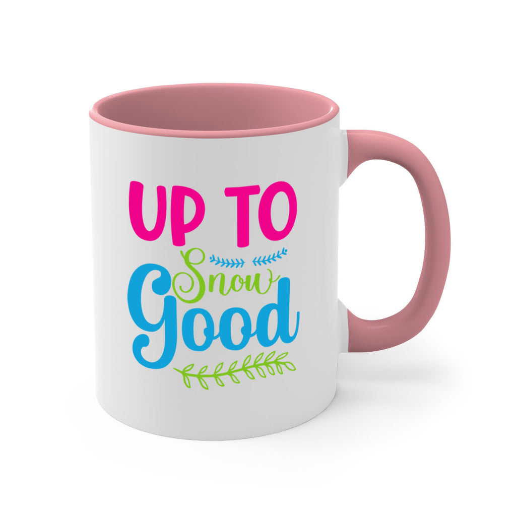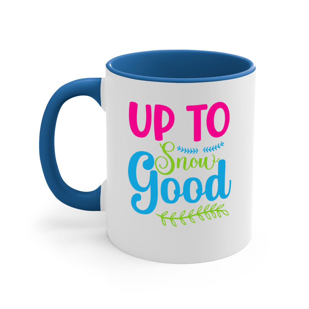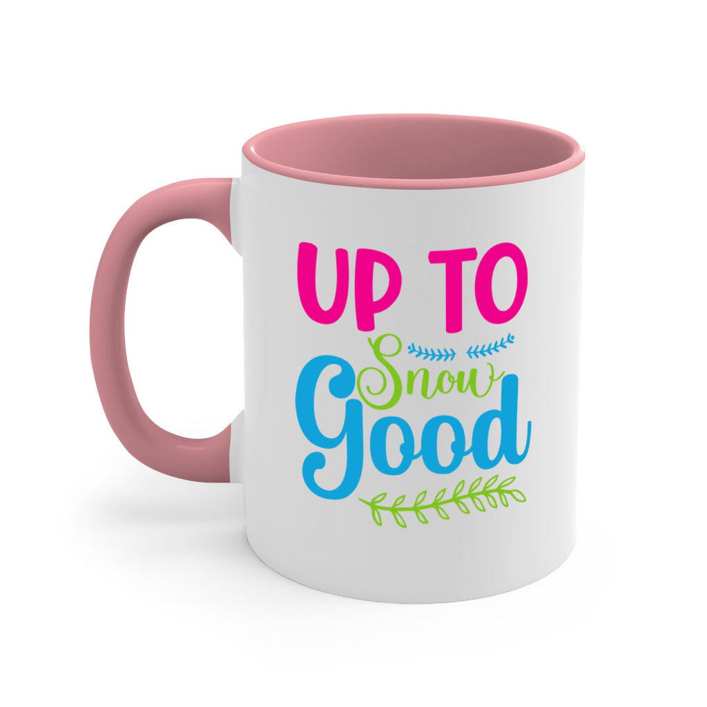 Enjoy the Up To Snow Good 425# Mug . Here to bring big gulps of coffee, Tea or any beverage and style, these two-tone coffee mugs help people around the world start the day just right. Choose between 5 different color options and 2 sizes to best complement the design. Each mug comes with a colored handle, a colored interior, and a classy, glossy finish so that your mugs become an instant favorite.