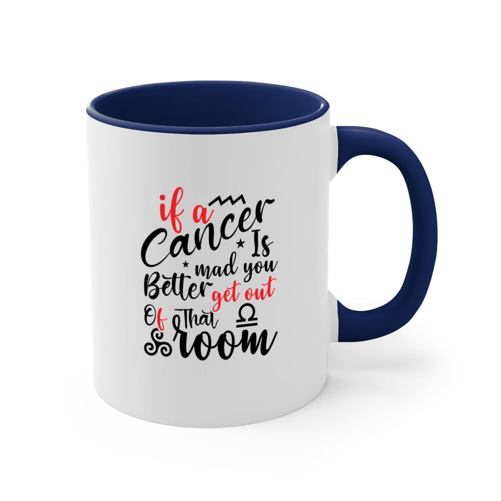 Enjoy the If A Cancer Is Mad You Better Get Out Of That Room 250# Mug . Here to bring big gulps of coffee, Tea or any beverage and style, these two-tone coffee mugs help people around the world start the day just right. Choose between 5 different color options and 2 sizes to best complement the design. Each mug comes with a colored handle, a colored interior, and a classy, glossy finish so that your mugs become an instant favorite.