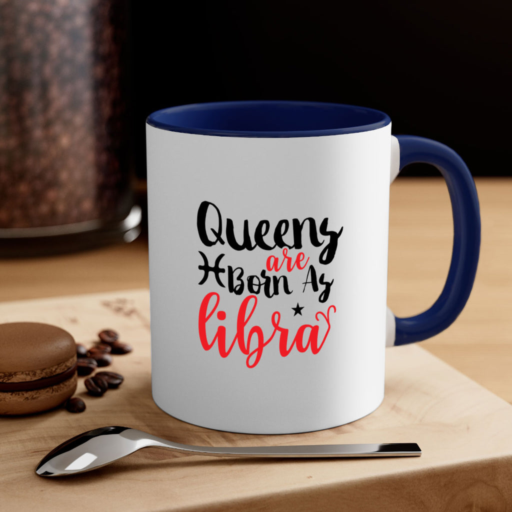 Enjoy the queens Are Born As Libra 387# Mug . Here to bring big gulps of coffee, Tea or any beverage and style, these two-tone coffee mugs help people around the world start the day just right. Choose between 5 different color options and 2 sizes to best complement the design. Each mug comes with a colored handle, a colored interior, and a classy, glossy finish so that your mugs become an instant favorite.