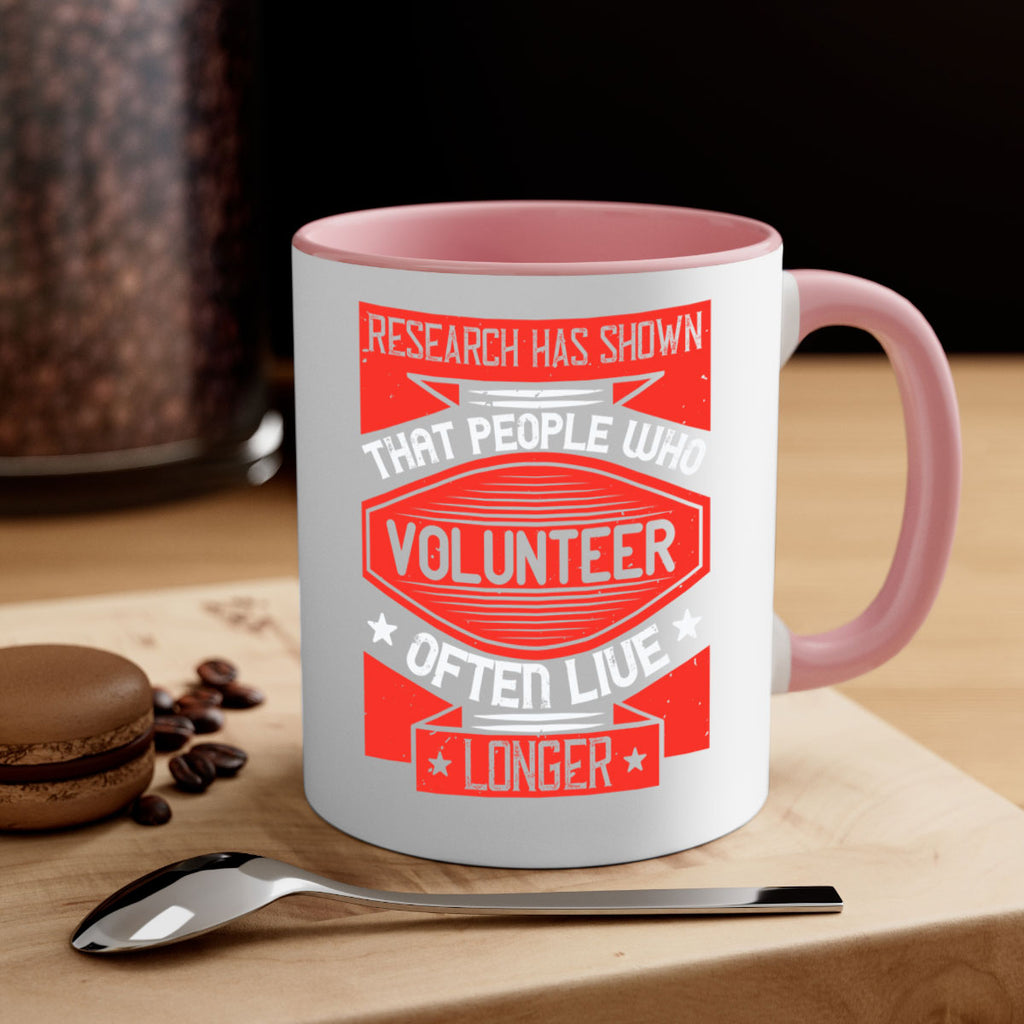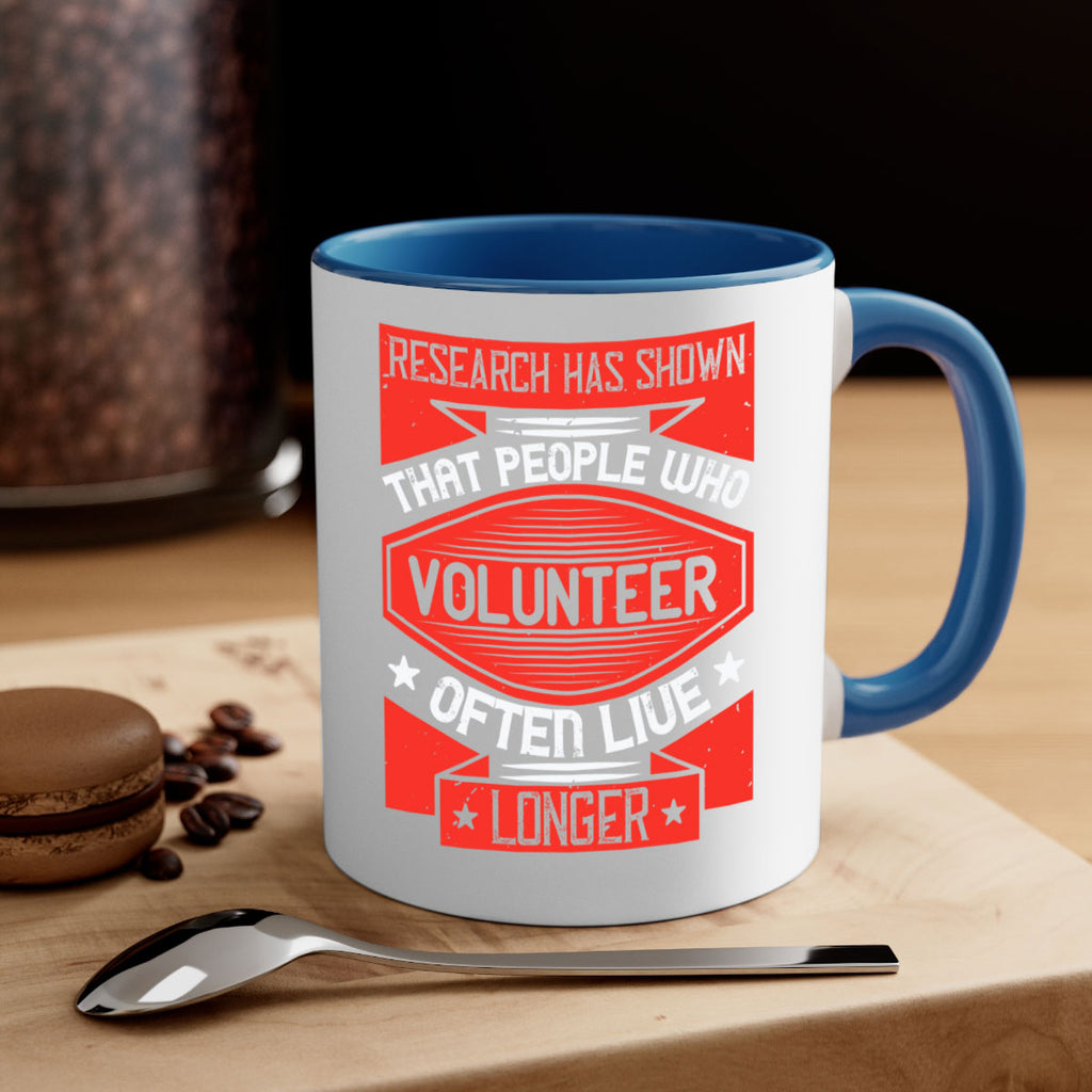 Enjoy the Research has shown that people who volunteer often live longer Style 32# Mug . Here to bring big gulps of coffee, Tea or any beverage and style, these two-tone coffee mugs help people around the world start the day just right. Choose between 5 different color options and 2 sizes to best complement the design. Each mug comes with a colored handle, a colored interior, and a classy, glossy finish so that your mugs become an instant favorite.