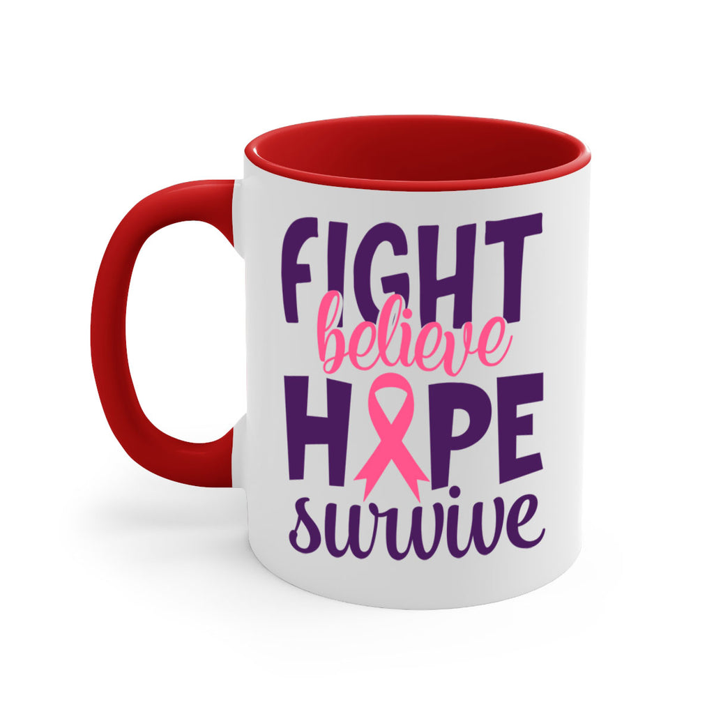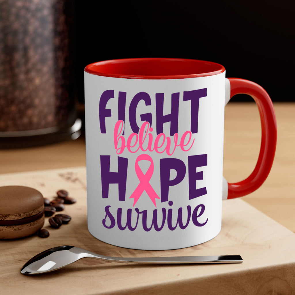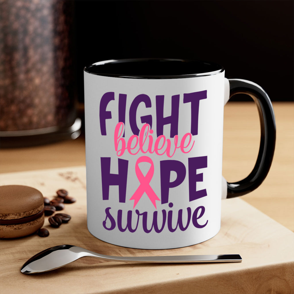 Enjoy the fight believe hope survive Style 13# Mug . Here to bring big gulps of coffee, Tea or any beverage and style, these two-tone coffee mugs help people around the world start the day just right. Choose between 5 different color options and 2 sizes to best complement the design. Each mug comes with a colored handle, a colored interior, and a classy, glossy finish so that your mugs become an instant favorite.