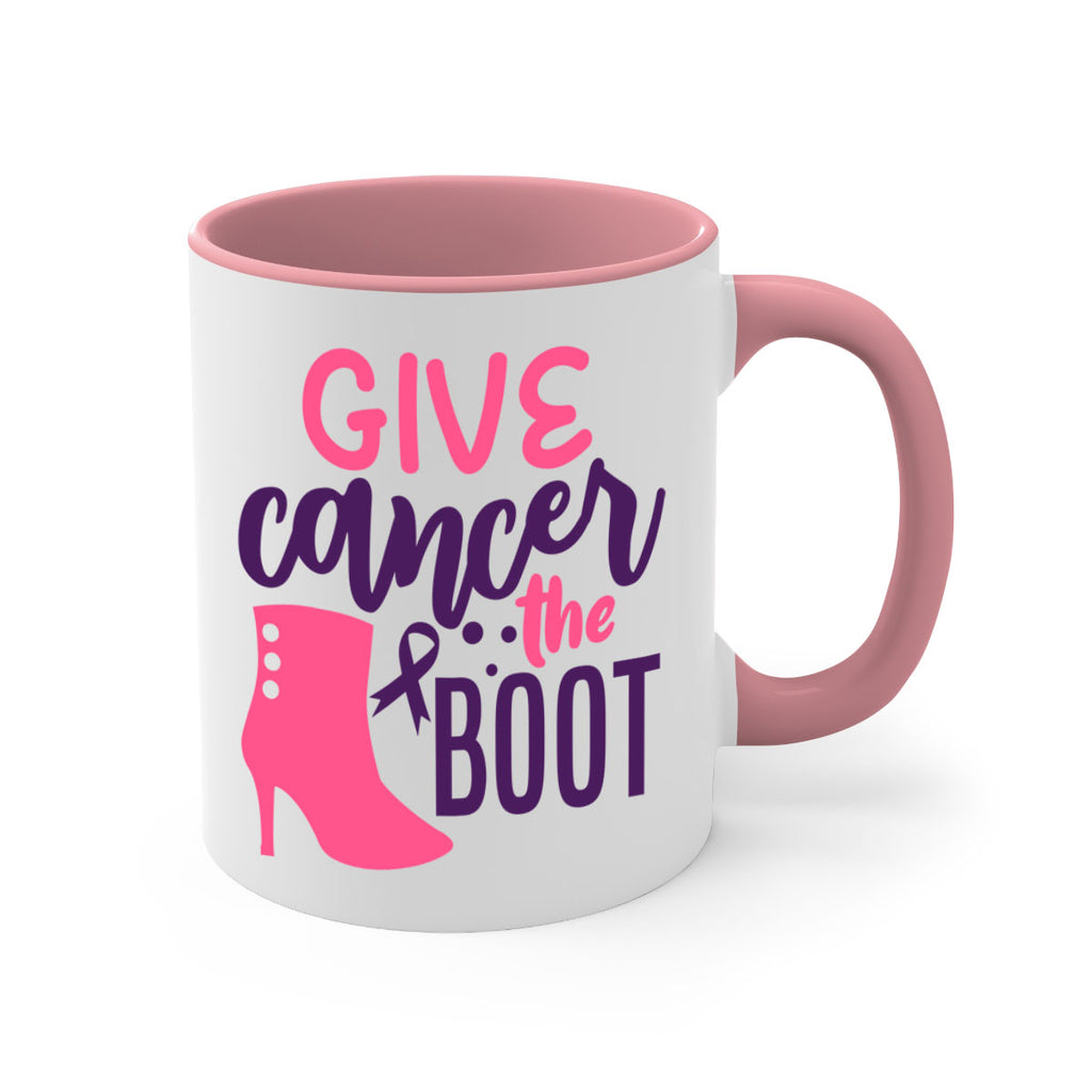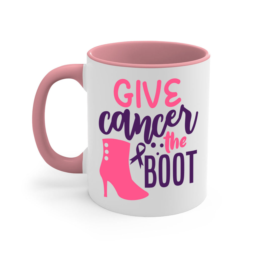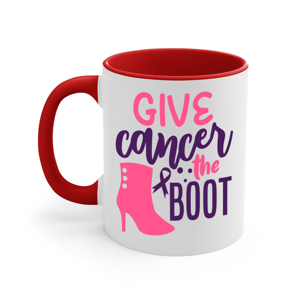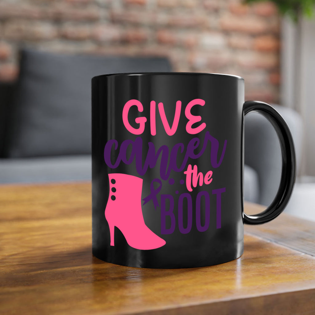 Enjoy the give cancer the boot Style 1# Mug . Here to bring big gulps of coffee, Tea or any beverage and style, these two-tone coffee mugs help people around the world start the day just right. Choose between 5 different color options and 2 sizes to best complement the design. Each mug comes with a colored handle, a colored interior, and a classy, glossy finish so that your mugs become an instant favorite.