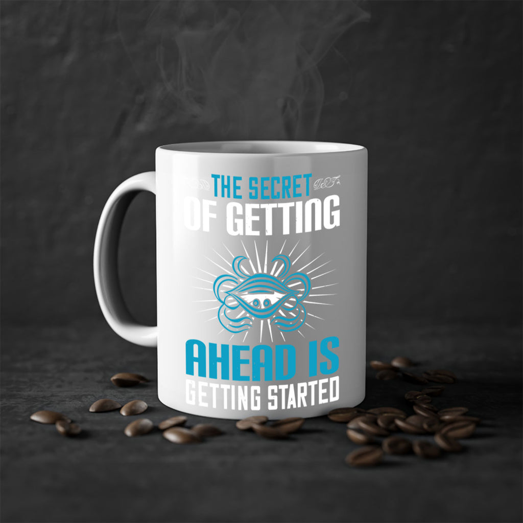 Enjoy the The secret of getting ahead is getting started Style 16# Mug . Here to bring big gulps of coffee, Tea or any beverage and style, these two-tone coffee mugs help people around the world start the day just right. Choose between 5 different color options and 2 sizes to best complement the design. Each mug comes with a colored handle, a colored interior, and a classy, glossy finish so that your mugs become an instant favorite.