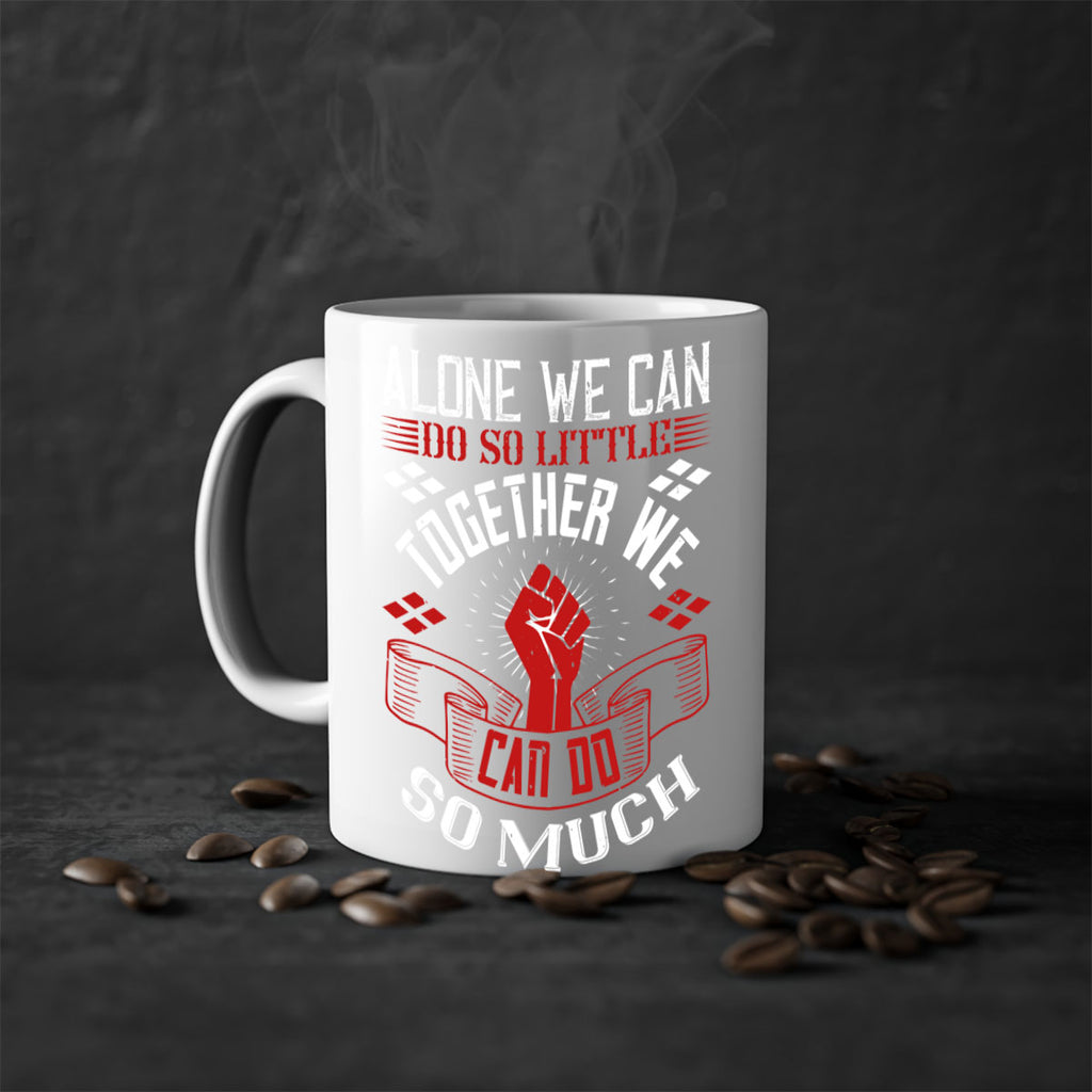 Enjoy the Alone we can do so little together we can do so much Style 4# Mug . Here to bring big gulps of coffee, Tea or any beverage and style, these two-tone coffee mugs help people around the world start the day just right. Choose between 5 different color options and 2 sizes to best complement the design. Each mug comes with a colored handle, a colored interior, and a classy, glossy finish so that your mugs become an instant favorite.