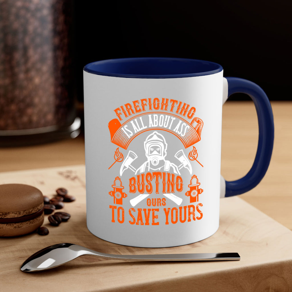 Enjoy the Firefighter is all about ass busting to save yours Style 78# Mug . Here to bring big gulps of coffee, Tea or any beverage and style, these two-tone coffee mugs help people around the world start the day just right. Choose between 5 different color options and 2 sizes to best complement the design. Each mug comes with a colored handle, a colored interior, and a classy, glossy finish so that your mugs become an instant favorite.
