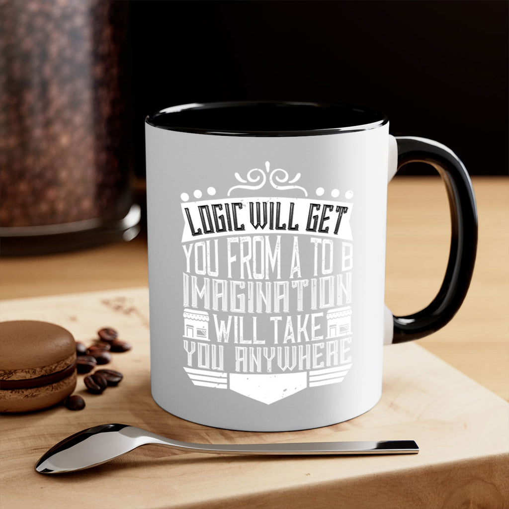 Enjoy the Logic will get you from A to B Imagination will take you anywhere Style 24# Mug . Here to bring big gulps of coffee, Tea or any beverage and style, these two-tone coffee mugs help people around the world start the day just right. Choose between 5 different color options and 2 sizes to best complement the design. Each mug comes with a colored handle, a colored interior, and a classy, glossy finish so that your mugs become an instant favorite.