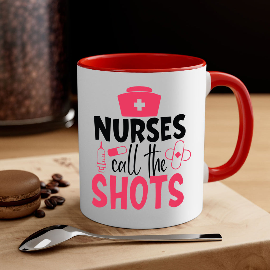 Enjoy the nurses call the shots Style Style 88# Mug . Here to bring big gulps of coffee, Tea or any beverage and style, these two-tone coffee mugs help people around the world start the day just right. Choose between 5 different color options and 2 sizes to best complement the design. Each mug comes with a colored handle, a colored interior, and a classy, glossy finish so that your mugs become an instant favorite.