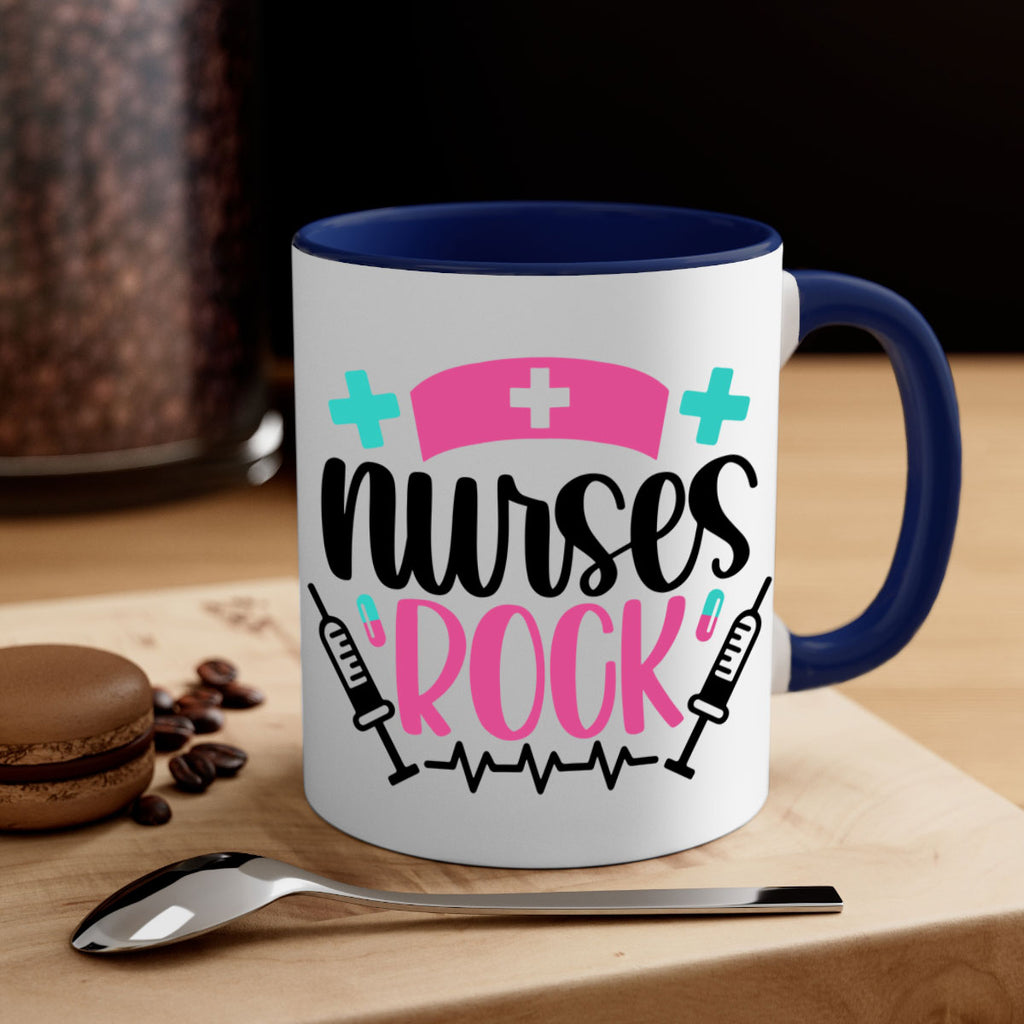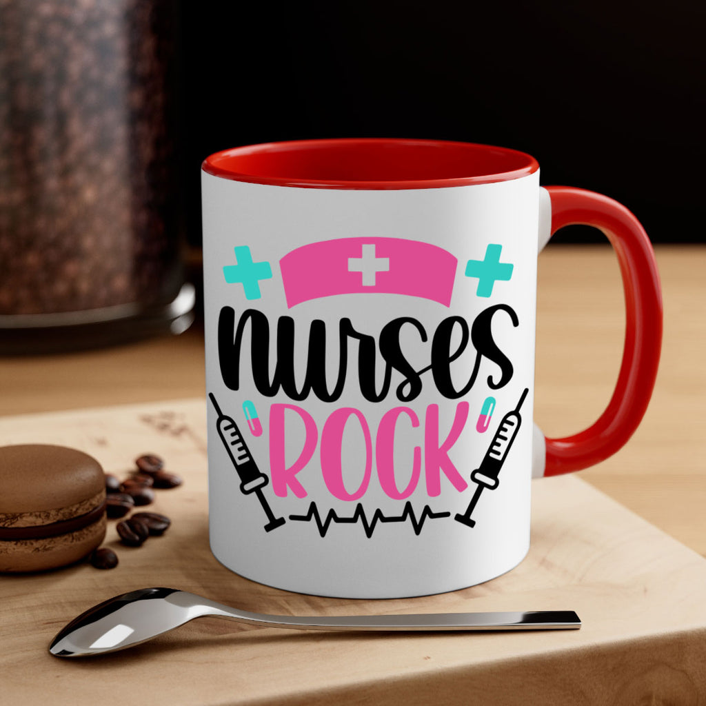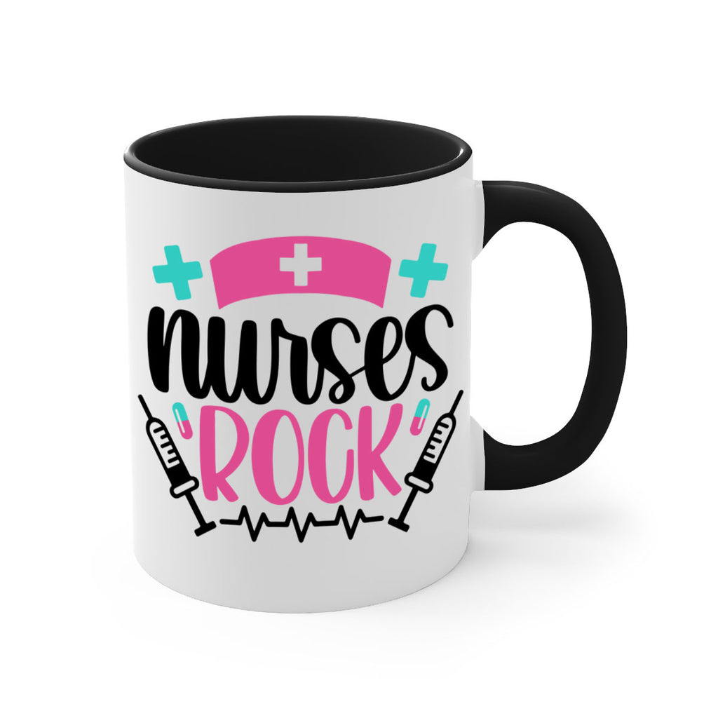 Enjoy the Nurses Rock Style Style 79# Mug . Here to bring big gulps of coffee, Tea or any beverage and style, these two-tone coffee mugs help people around the world start the day just right. Choose between 5 different color options and 2 sizes to best complement the design. Each mug comes with a colored handle, a colored interior, and a classy, glossy finish so that your mugs become an instant favorite.