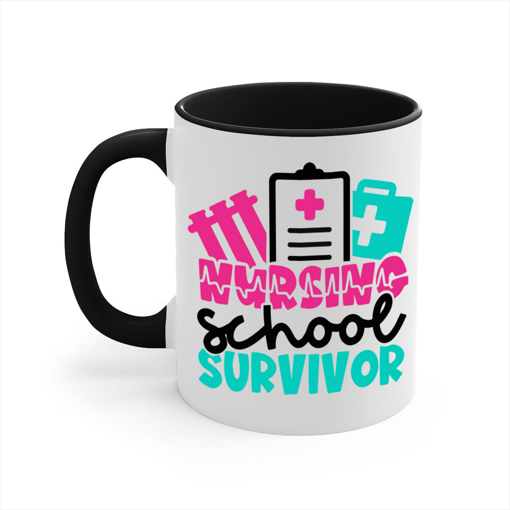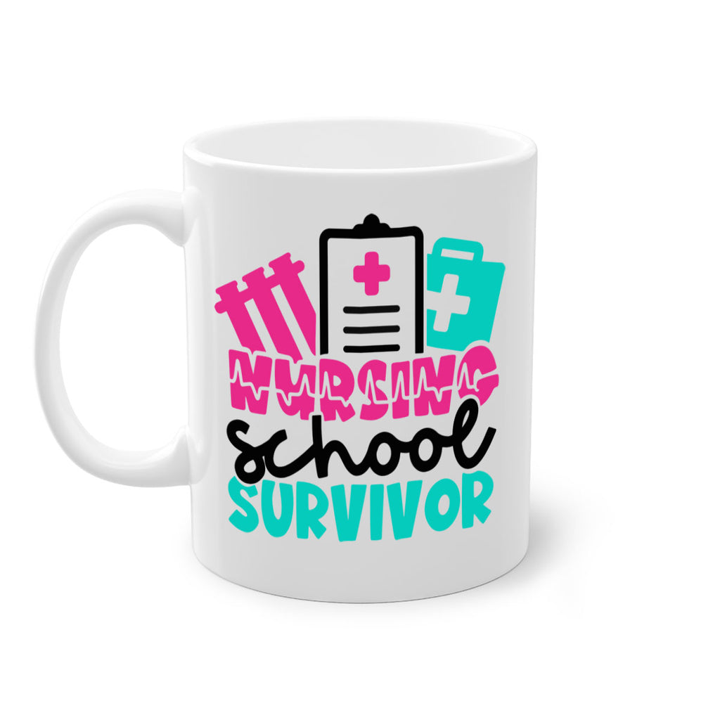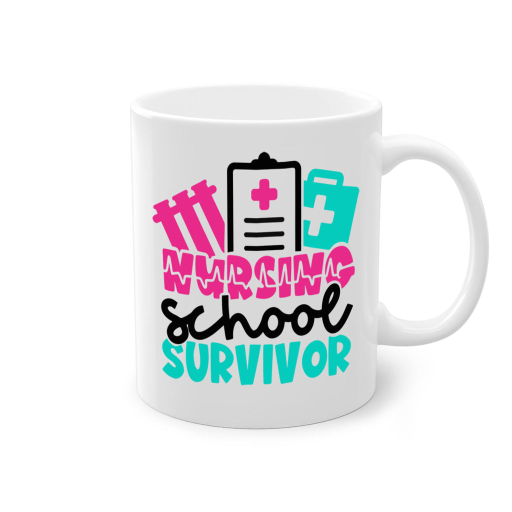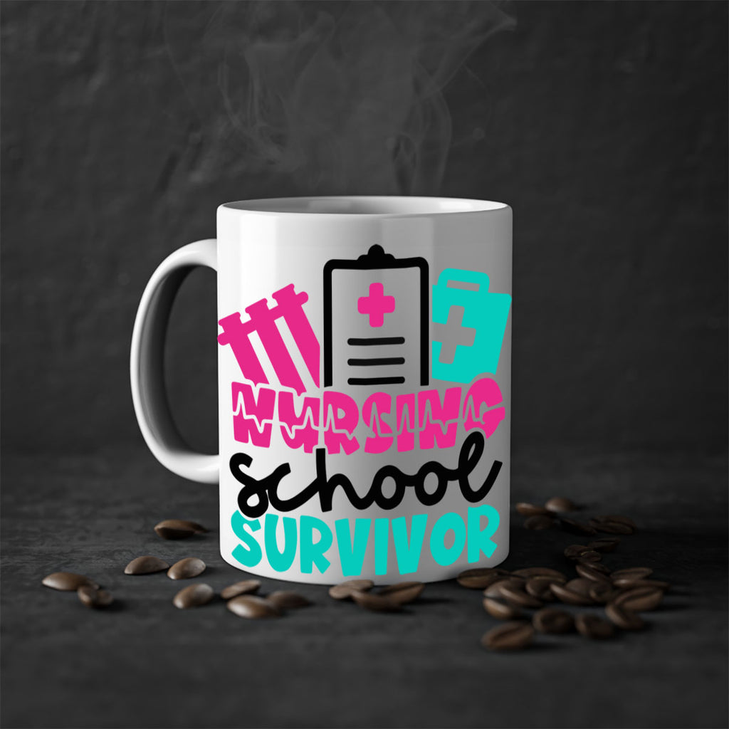 Enjoy the Nursing School Survivor Style Style 62# Mug . Here to bring big gulps of coffee, Tea or any beverage and style, these two-tone coffee mugs help people around the world start the day just right. Choose between 5 different color options and 2 sizes to best complement the design. Each mug comes with a colored handle, a colored interior, and a classy, glossy finish so that your mugs become an instant favorite.