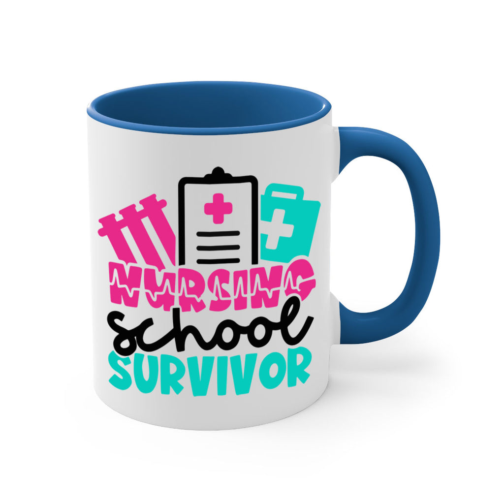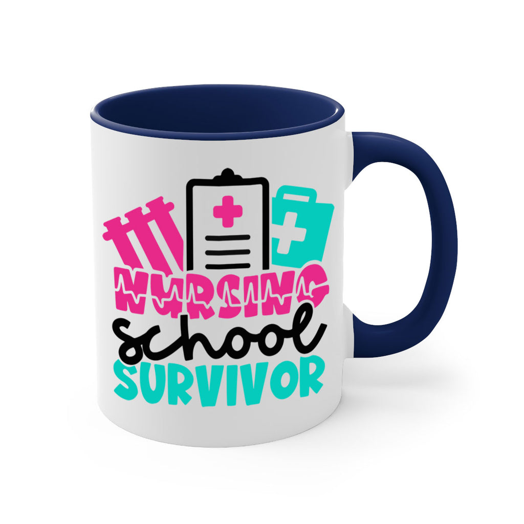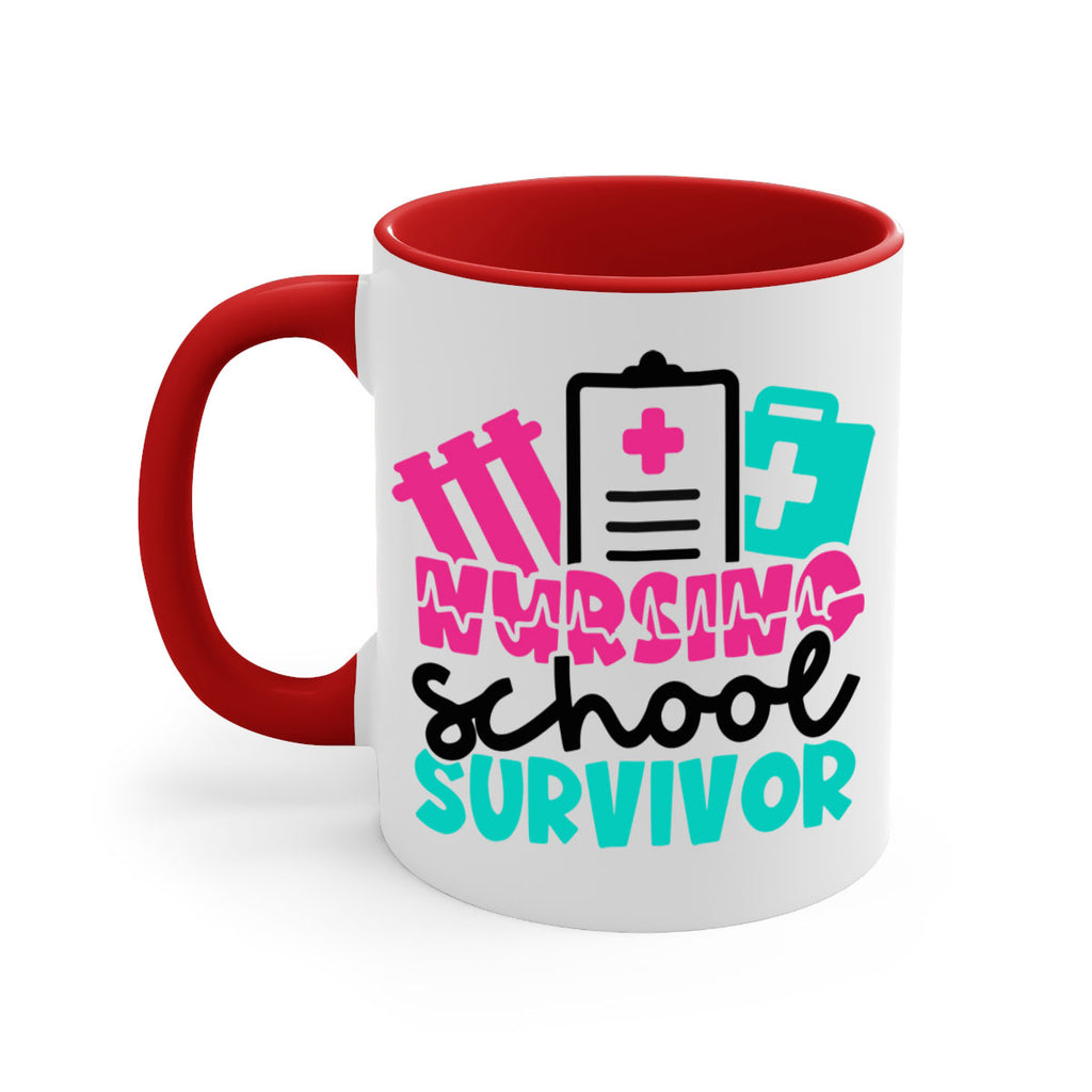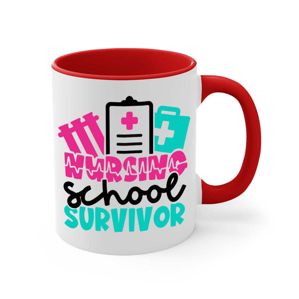 Enjoy the Nursing School Survivor Style Style 62# Mug . Here to bring big gulps of coffee, Tea or any beverage and style, these two-tone coffee mugs help people around the world start the day just right. Choose between 5 different color options and 2 sizes to best complement the design. Each mug comes with a colored handle, a colored interior, and a classy, glossy finish so that your mugs become an instant favorite.
