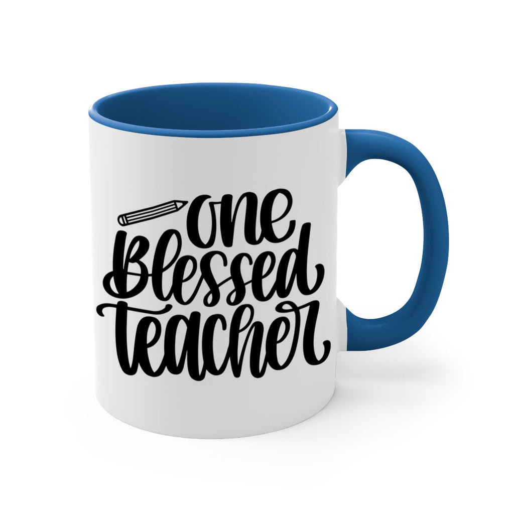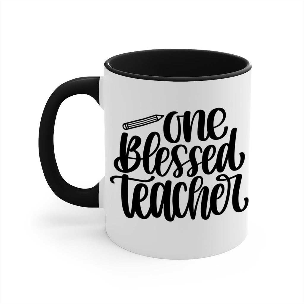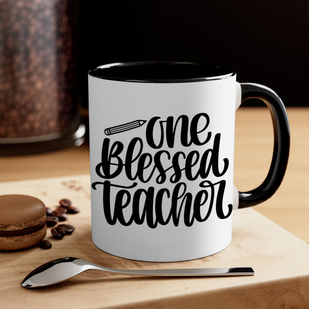 Enjoy the One Blessed Teacher Style 62# Mug . Here to bring big gulps of coffee, Tea or any beverage and style, these two-tone coffee mugs help people around the world start the day just right. Choose between 5 different color options and 2 sizes to best complement the design. Each mug comes with a colored handle, a colored interior, and a classy, glossy finish so that your mugs become an instant favorite.