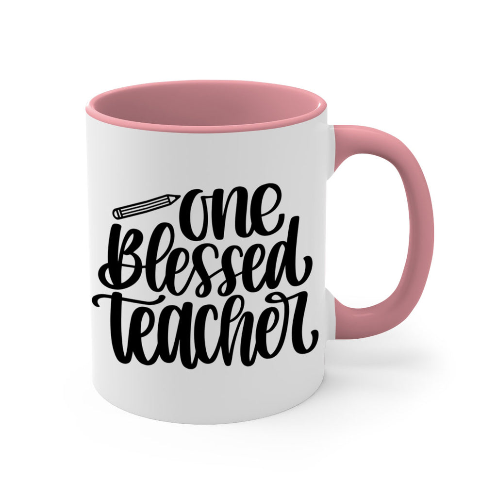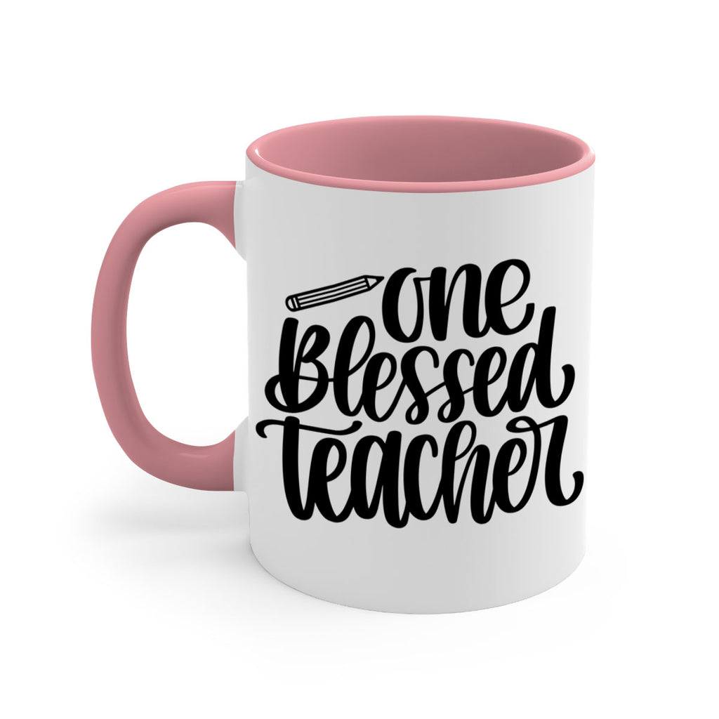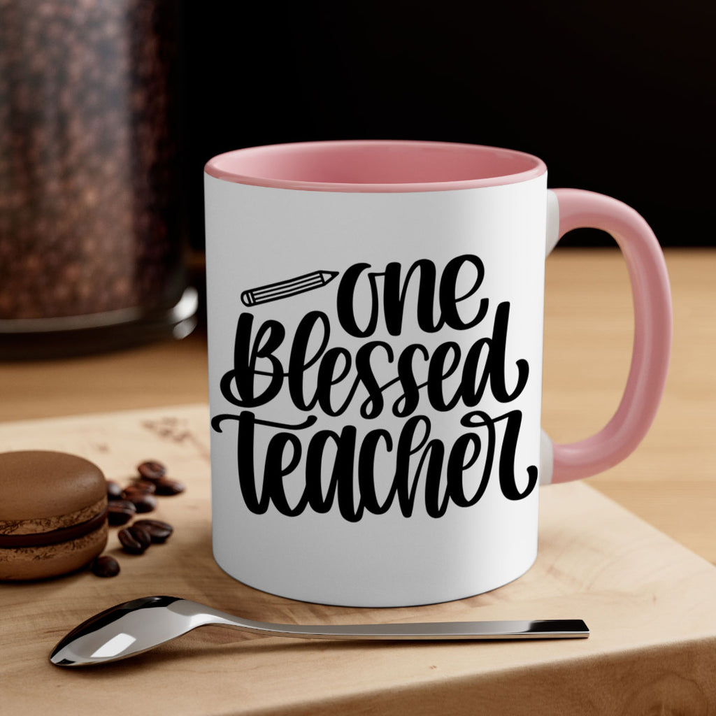 Enjoy the One Blessed Teacher Style 62# Mug . Here to bring big gulps of coffee, Tea or any beverage and style, these two-tone coffee mugs help people around the world start the day just right. Choose between 5 different color options and 2 sizes to best complement the design. Each mug comes with a colored handle, a colored interior, and a classy, glossy finish so that your mugs become an instant favorite.