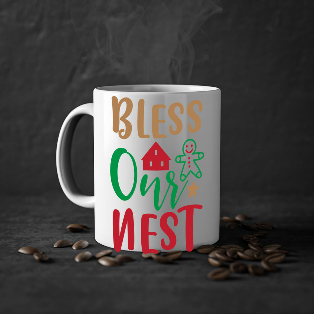 Enjoy the bless our nest style 80# Mug . Here to bring big gulps of coffee, Tea or any beverage and style, these two-tone coffee mugs help people around the world start the day just right. Choose between 5 different color options and 2 sizes to best complement the design. Each mug comes with a colored handle, a colored interior, and a classy, glossy finish so that your mugs become an instant favorite.