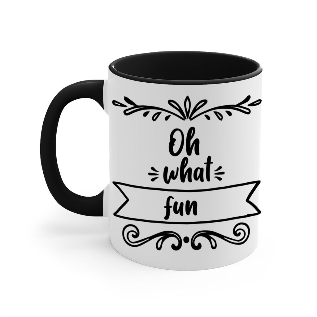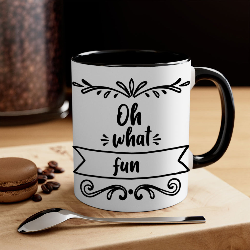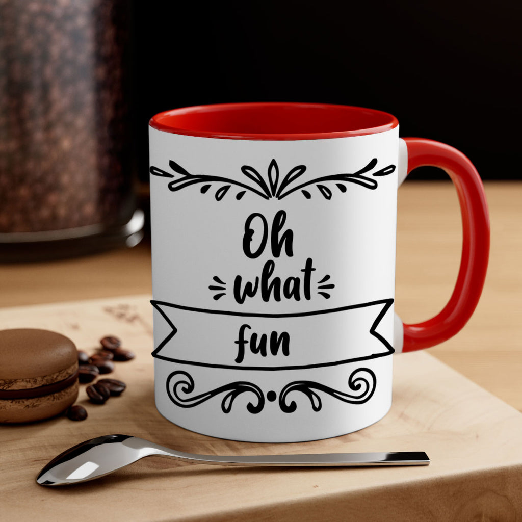 Enjoy the oh what fun style 562# Mug . Here to bring big gulps of coffee, Tea or any beverage and style, these two-tone coffee mugs help people around the world start the day just right. Choose between 5 different color options and 2 sizes to best complement the design. Each mug comes with a colored handle, a colored interior, and a classy, glossy finish so that your mugs become an instant favorite.