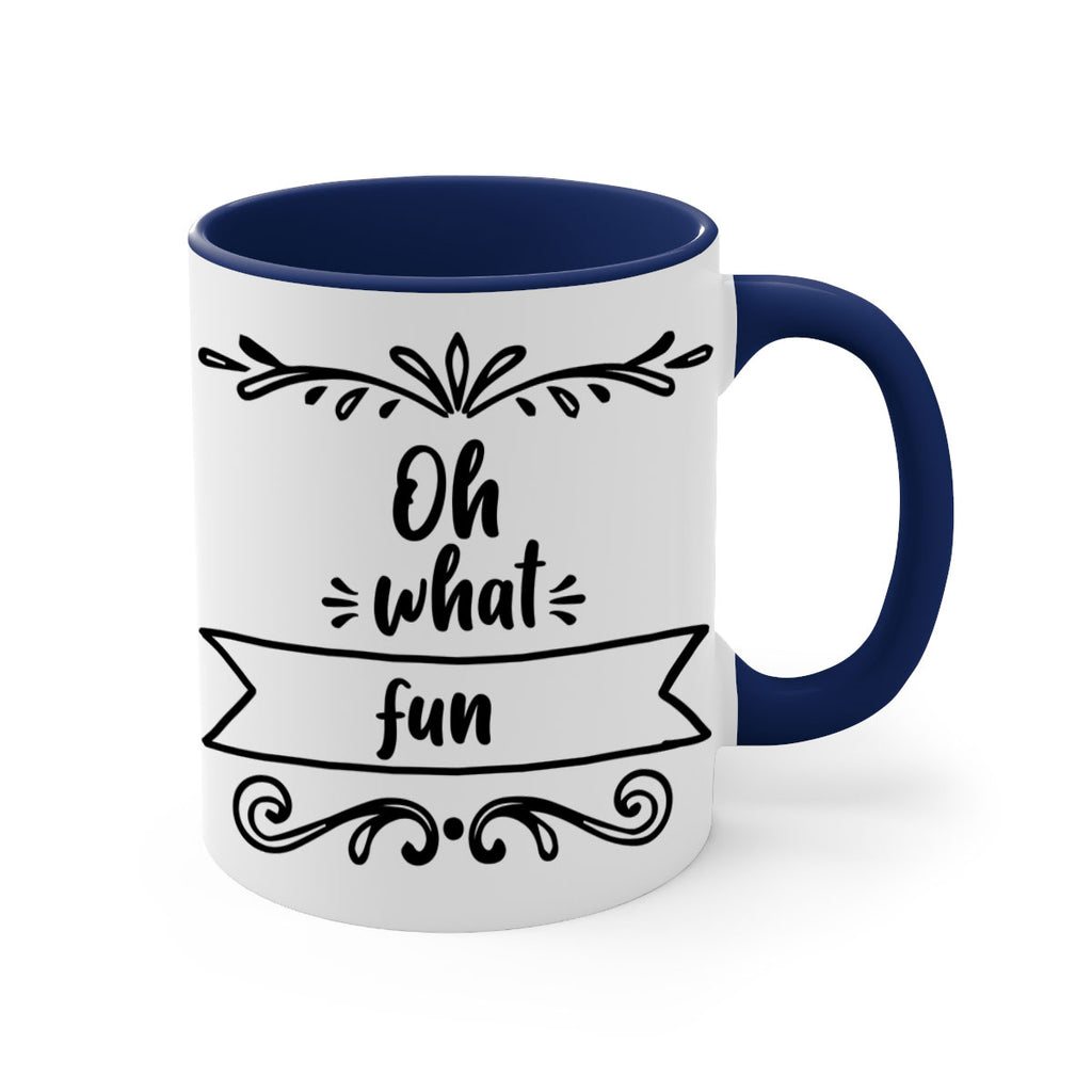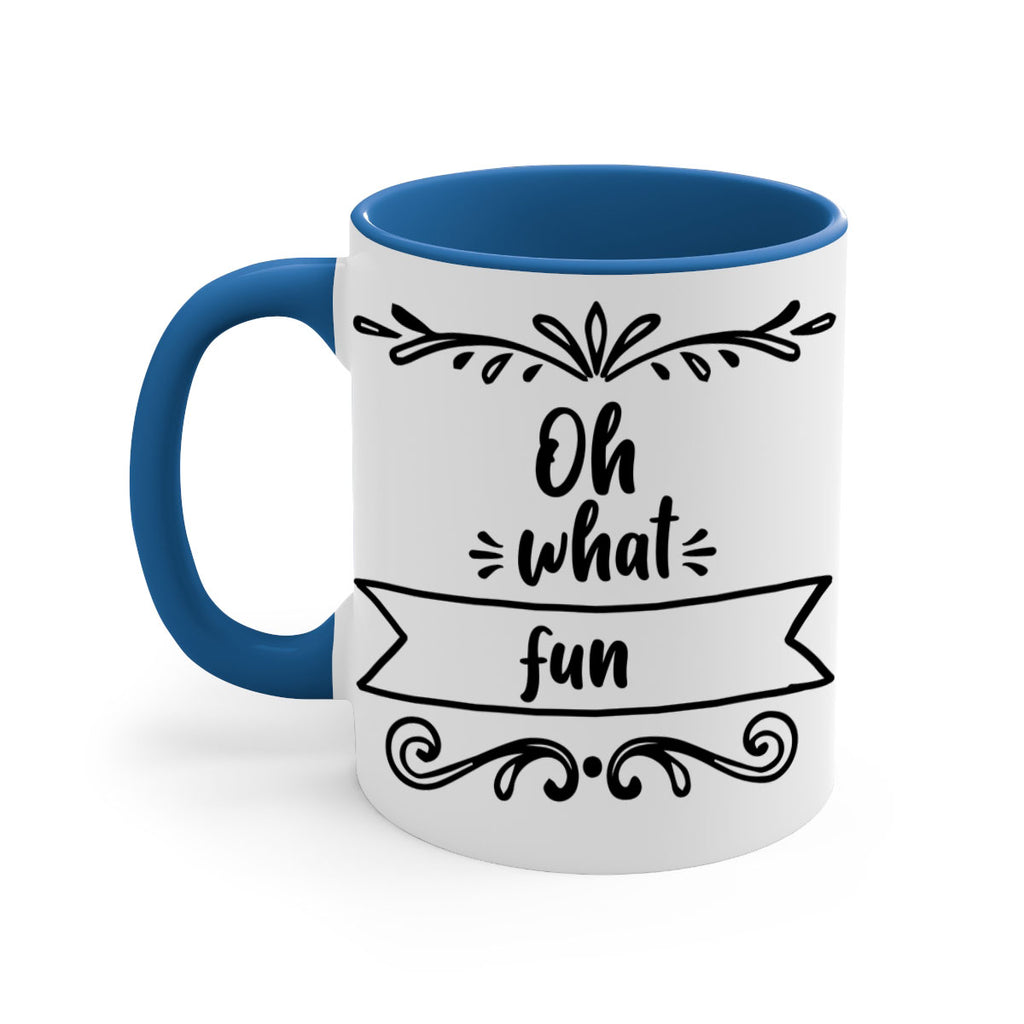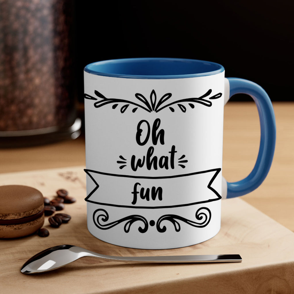 Enjoy the oh what fun style 562# Mug . Here to bring big gulps of coffee, Tea or any beverage and style, these two-tone coffee mugs help people around the world start the day just right. Choose between 5 different color options and 2 sizes to best complement the design. Each mug comes with a colored handle, a colored interior, and a classy, glossy finish so that your mugs become an instant favorite.
