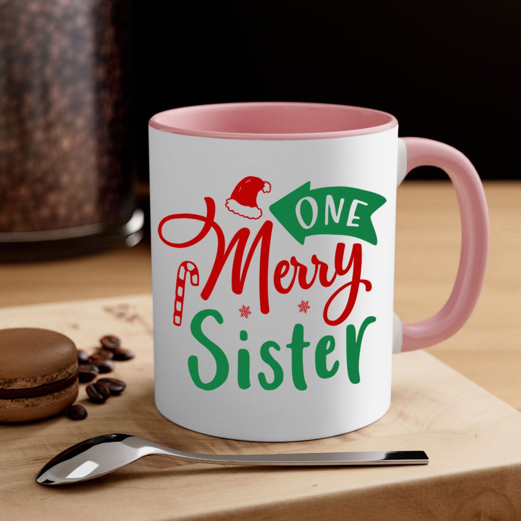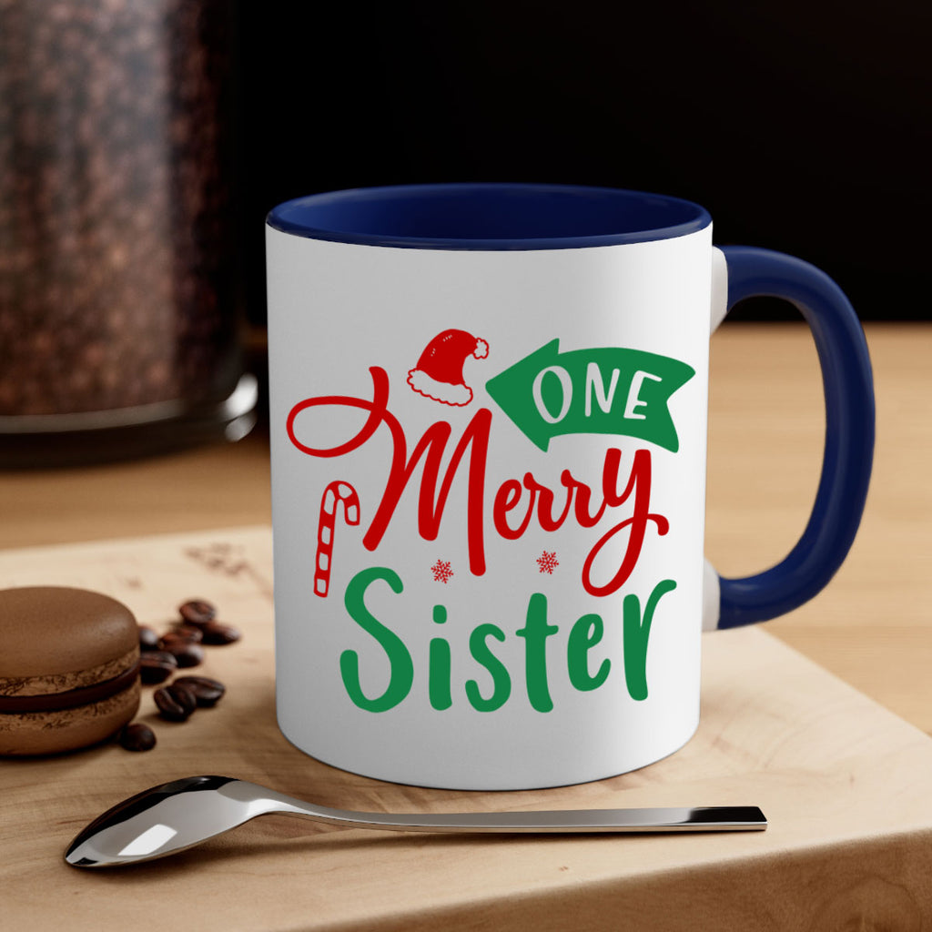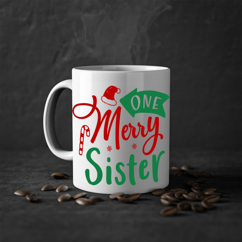 Enjoy the one merry sister style 574# Mug . Here to bring big gulps of coffee, Tea or any beverage and style, these two-tone coffee mugs help people around the world start the day just right. Choose between 5 different color options and 2 sizes to best complement the design. Each mug comes with a colored handle, a colored interior, and a classy, glossy finish so that your mugs become an instant favorite.