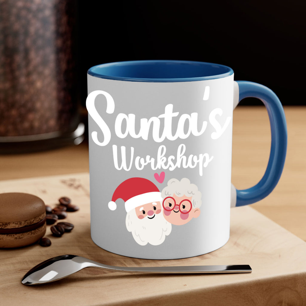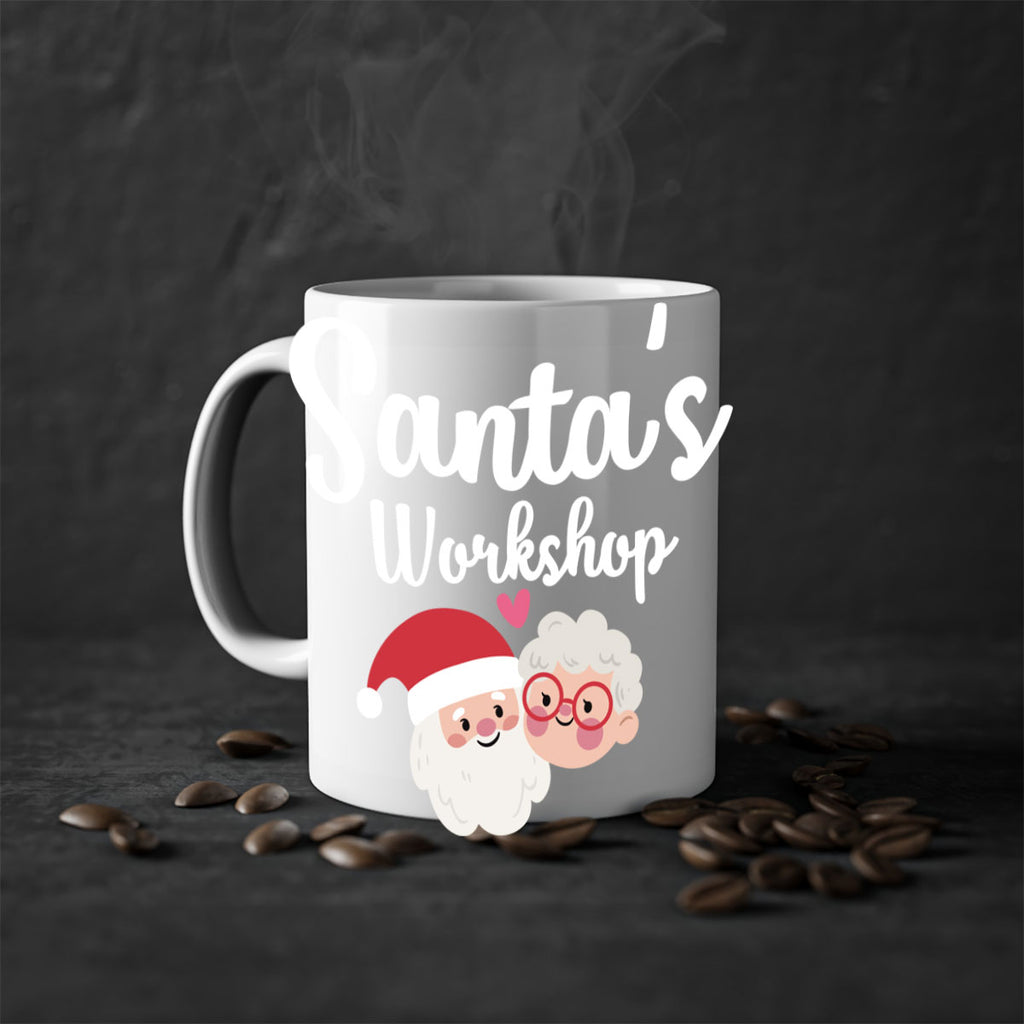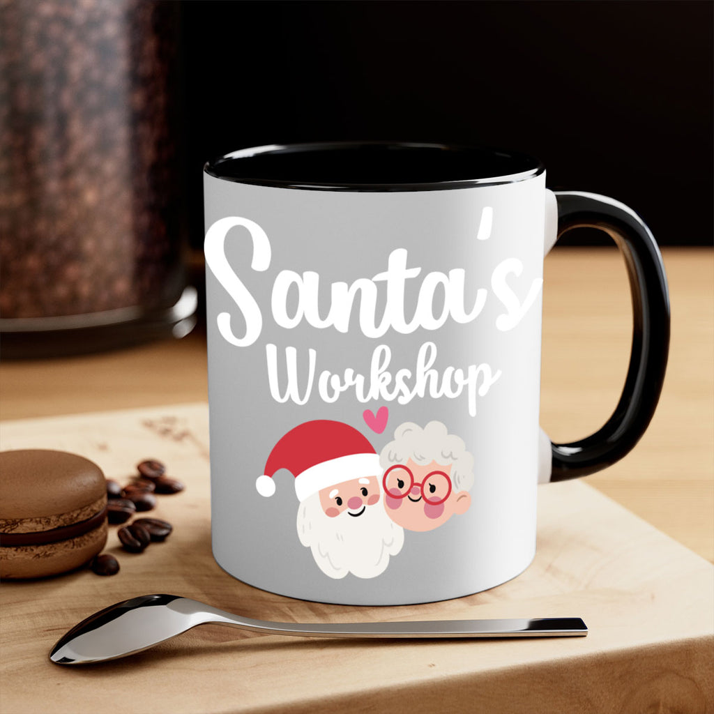 Enjoy the santas workshop style 1166# Mug . Here to bring big gulps of coffee, Tea or any beverage and style, these two-tone coffee mugs help people around the world start the day just right. Choose between 5 different color options and 2 sizes to best complement the design. Each mug comes with a colored handle, a colored interior, and a classy, glossy finish so that your mugs become an instant favorite.