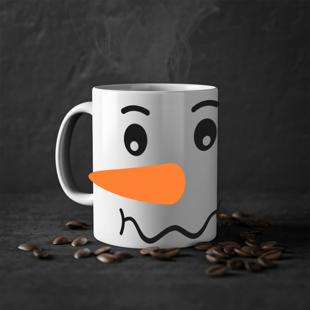 Enjoy the snowman face style 27# Mug . Here to bring big gulps of coffee, Tea or any beverage and style, these two-tone coffee mugs help people around the world start the day just right. Choose between 5 different color options and 2 sizes to best complement the design. Each mug comes with a colored handle, a colored interior, and a classy, glossy finish so that your mugs become an instant favorite.