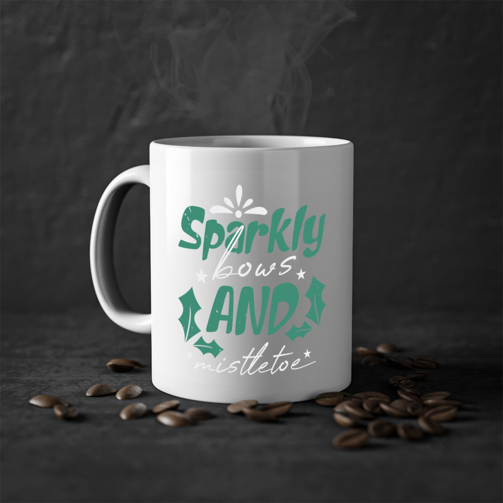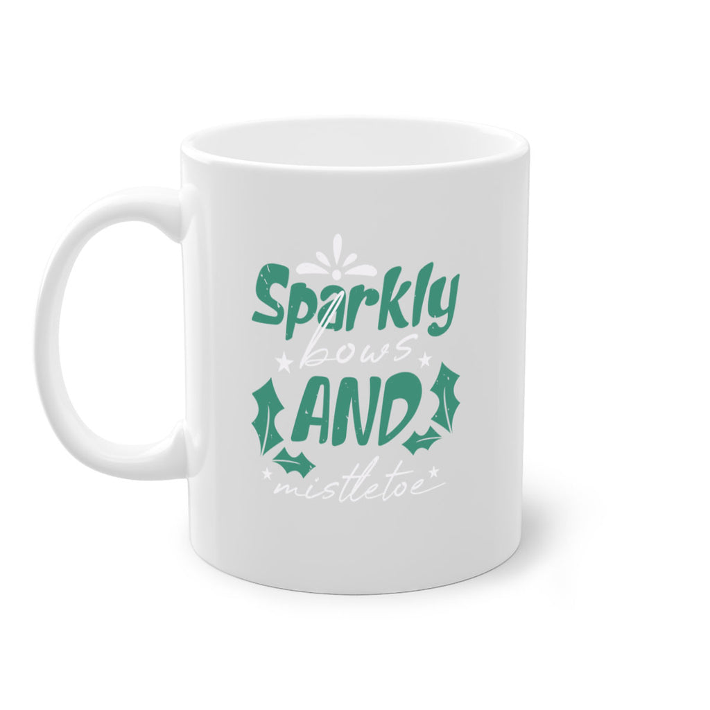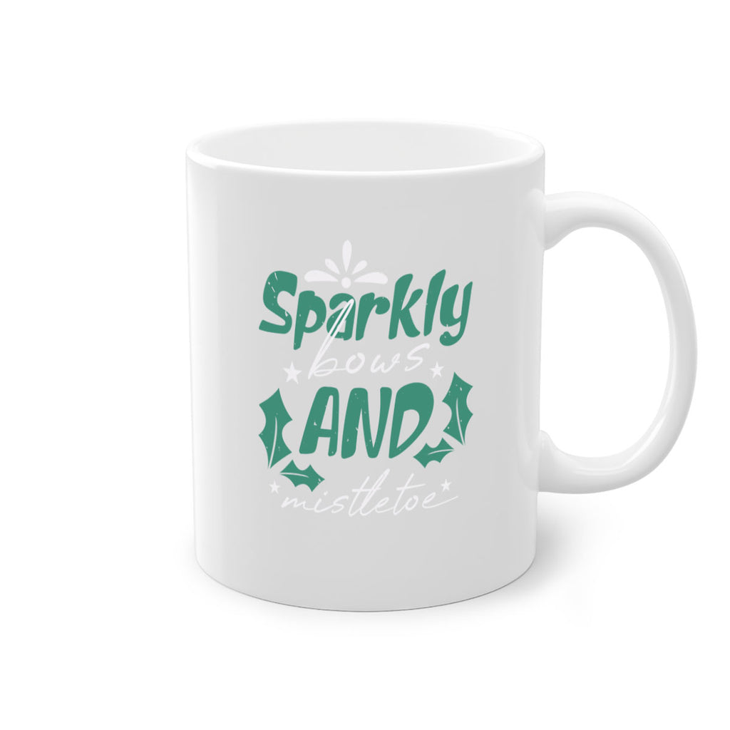 Enjoy the sparkly bows and mistletoe 357# Mug . Here to bring big gulps of coffee, Tea or any beverage and style, these two-tone coffee mugs help people around the world start the day just right. Choose between 5 different color options and 2 sizes to best complement the design. Each mug comes with a colored handle, a colored interior, and a classy, glossy finish so that your mugs become an instant favorite.